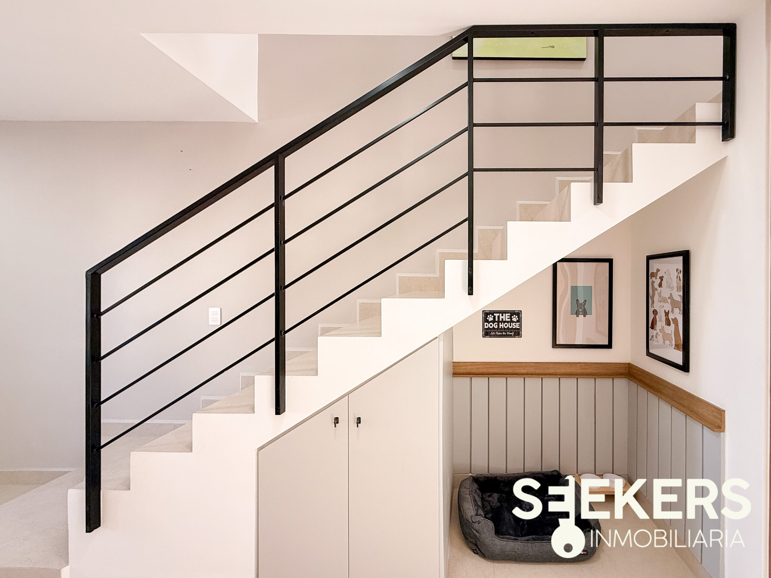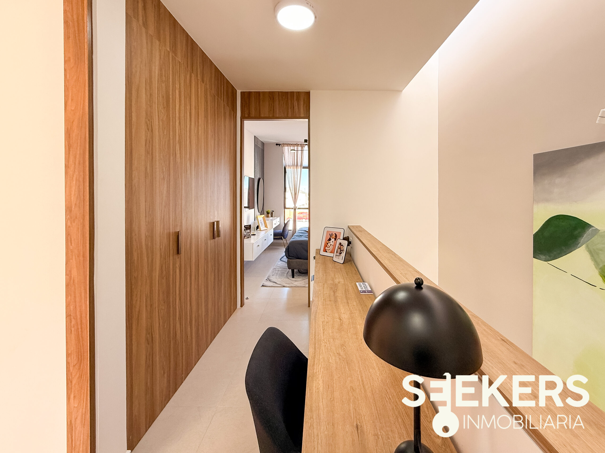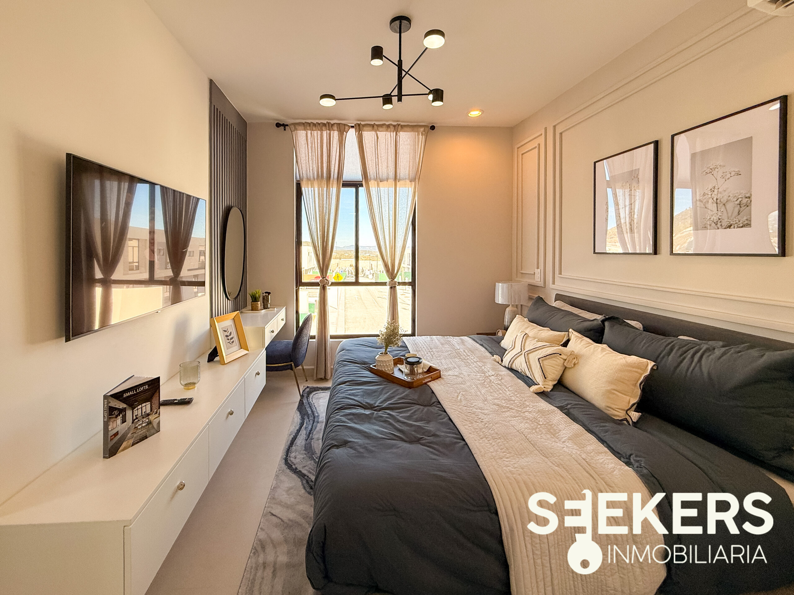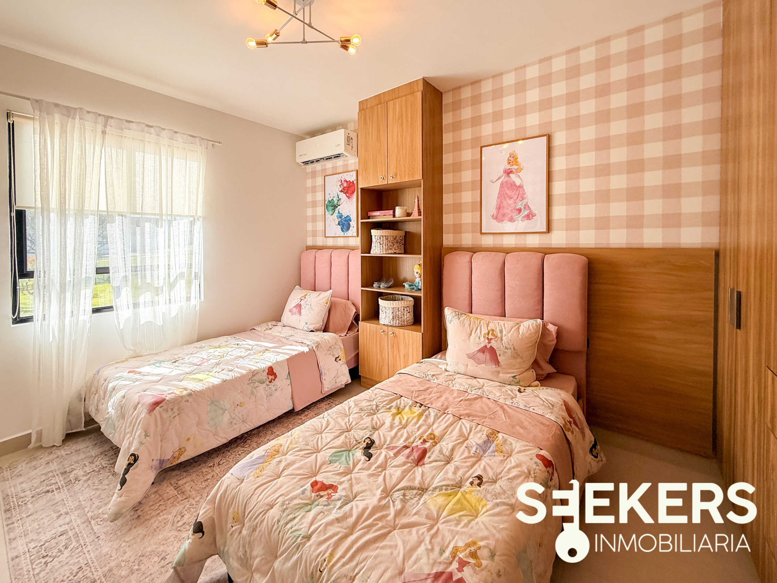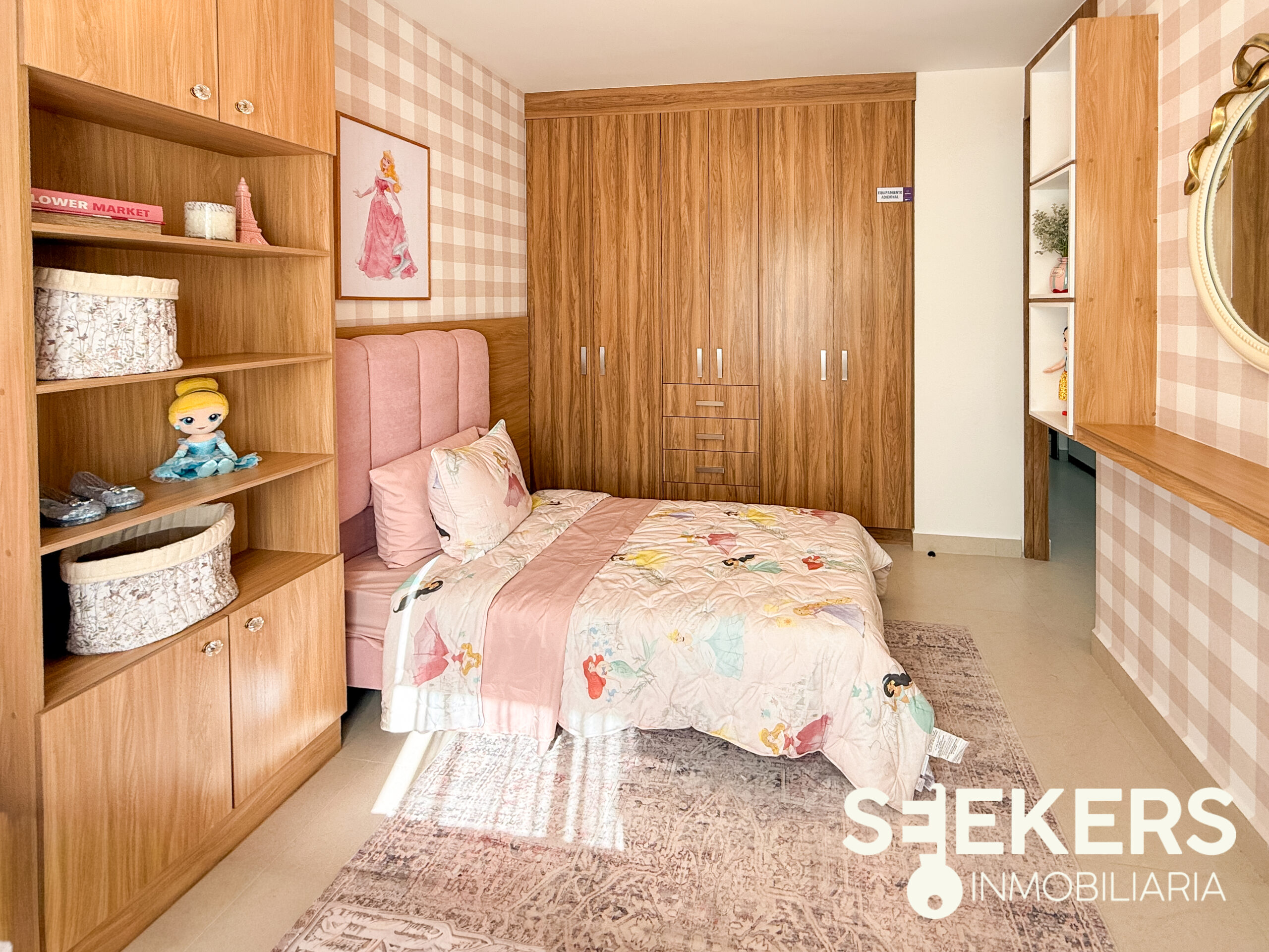 En el segundo nivel, la casa integra un espacio de escritorio, perfecto para home office o área de estudio. La recámara secundaria cuenta con baño completo privado, ofreciendo independencia y confort. La recámara principal destaca por su amplitud, al incluir vestidor y baño completo, creando un espacio cómodo y bien organizado para el descanso.