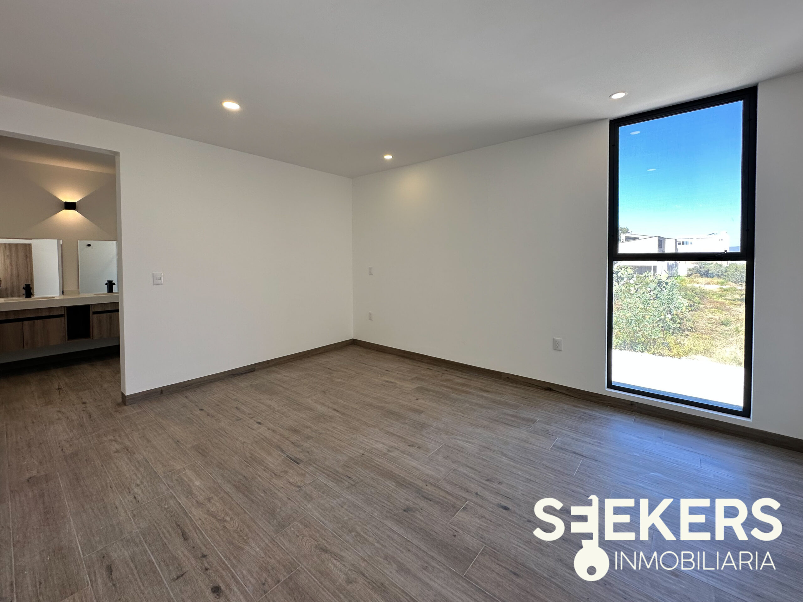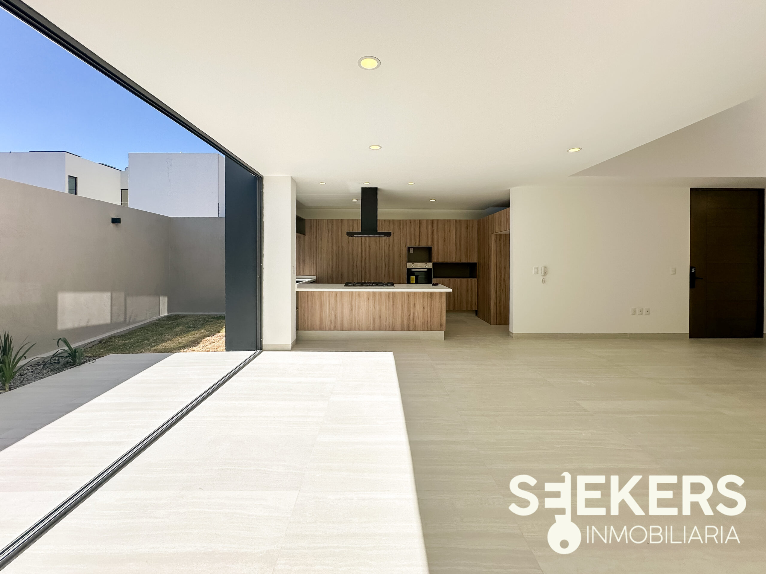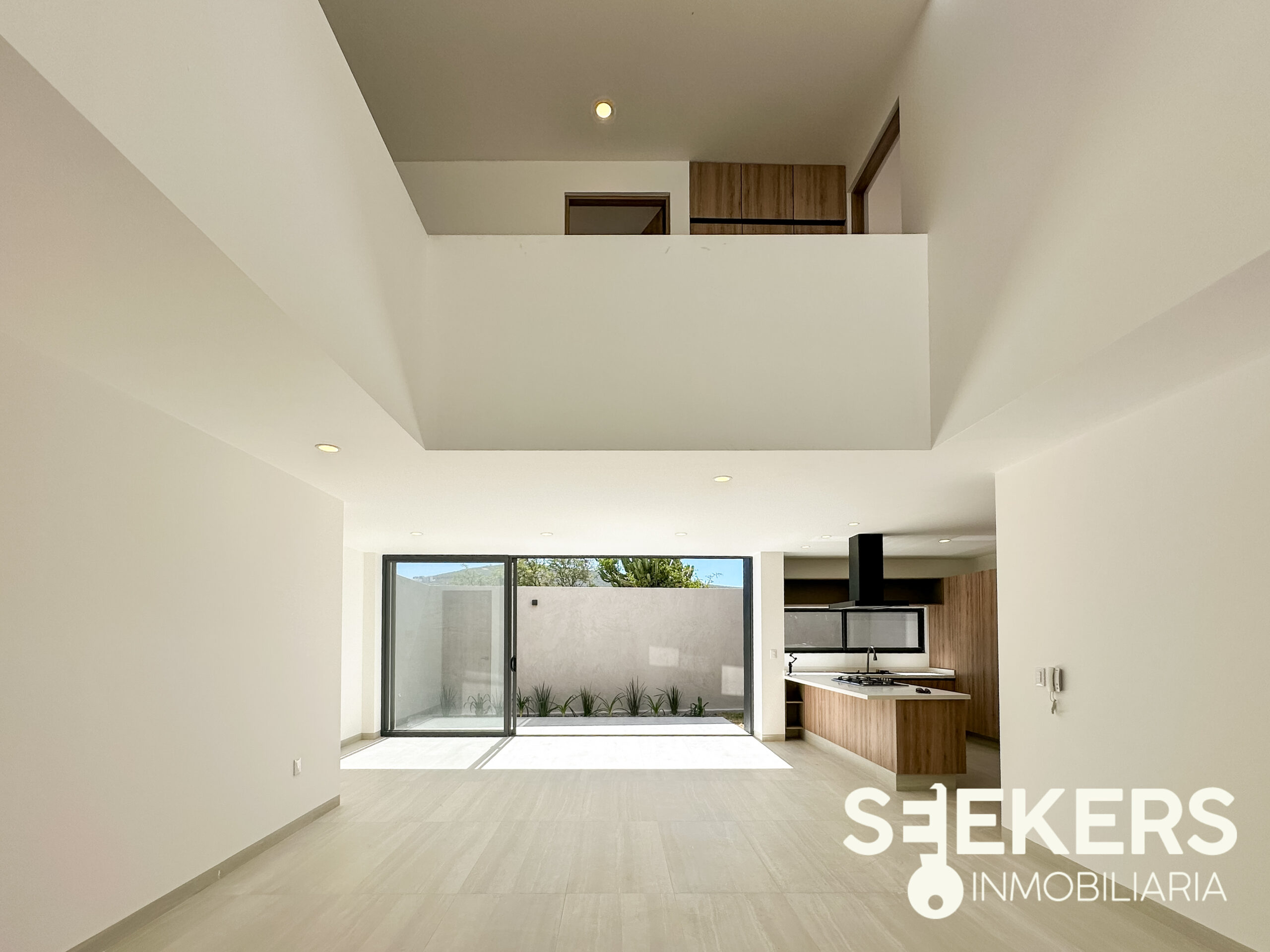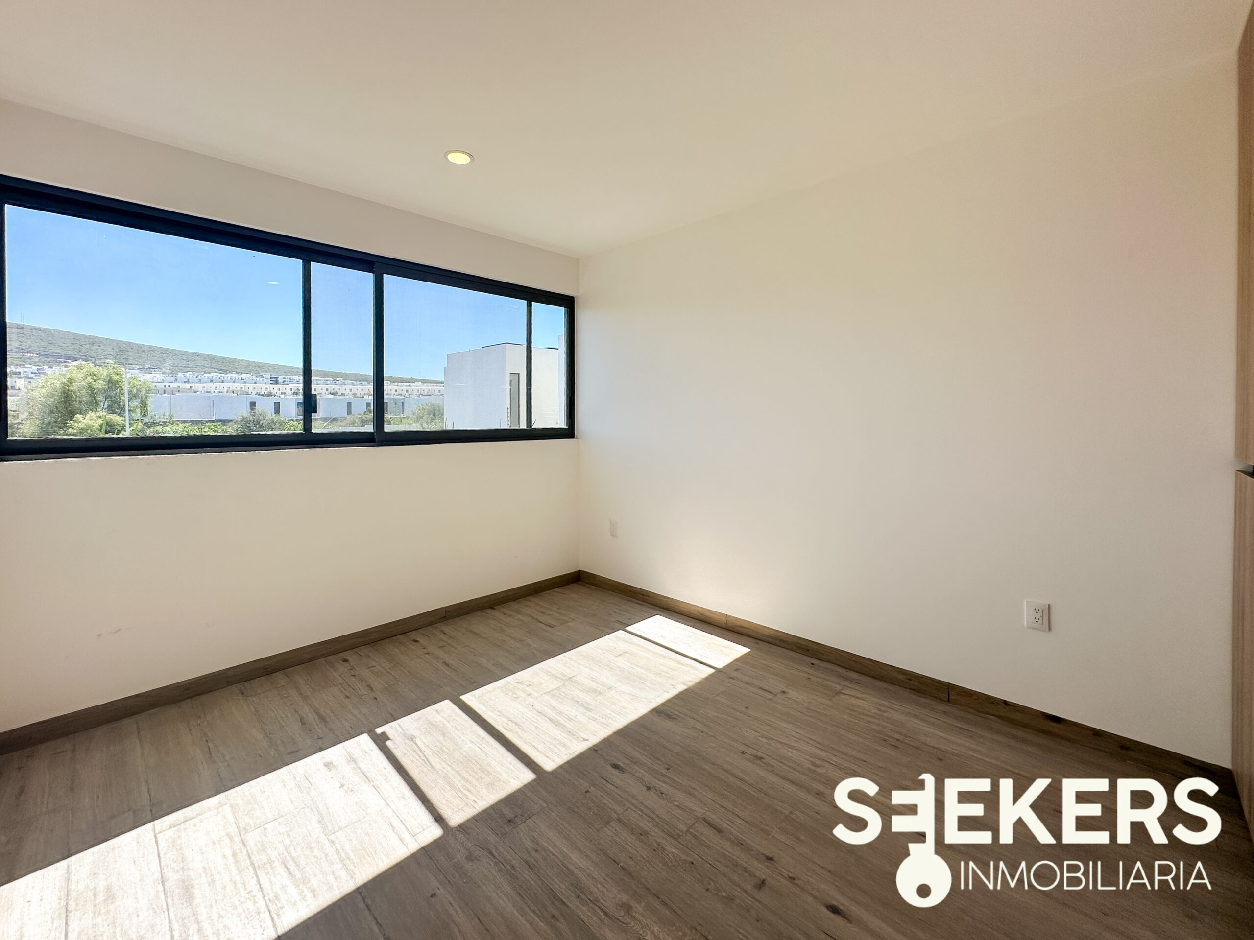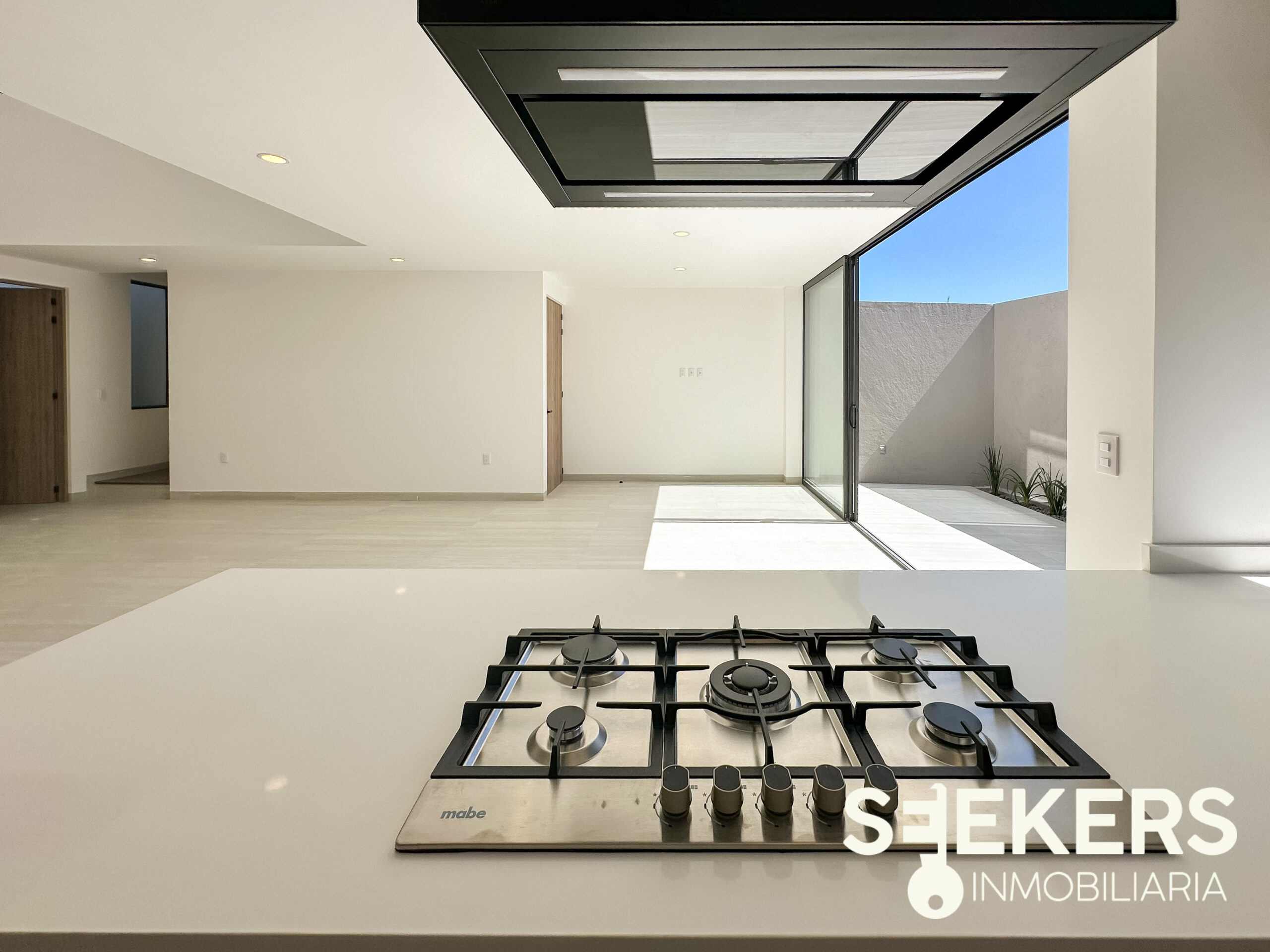 Casa en venta en Querétaro, ubicada en fraccionamiento con seguridad y excelente distribución. Construida en dos niveles más roof garden, esta propiedad es ideal para quienes buscan casas para familias en Querétaro o casas con roof garden en Querétaro. En planta baja cuenta con cochera para 3 autos, estudio o cuarta recámara con baño completo y terraza, sala con doble altura, comedor con salida al jardín trasero, cocina integral equipada con barras de cuarzo, cuarto de lavado y bodega. En planta alta: recámara principal con amplio vestidor y baño con doble lavabo, dos recámaras secundarias con clóset, baño completo con canceles de cristal templado y lavabos de mármol, además de clóset de blancos. El tercer nivel ofrece un amplio roof garden con medio baño y vista panorámica. Una excelente opción en el mercado de casas en venta en Querétaro, cerca de escuelas y zonas comerciales. Ideal para vivir cómodamente o como casa para inversión en Querétaro