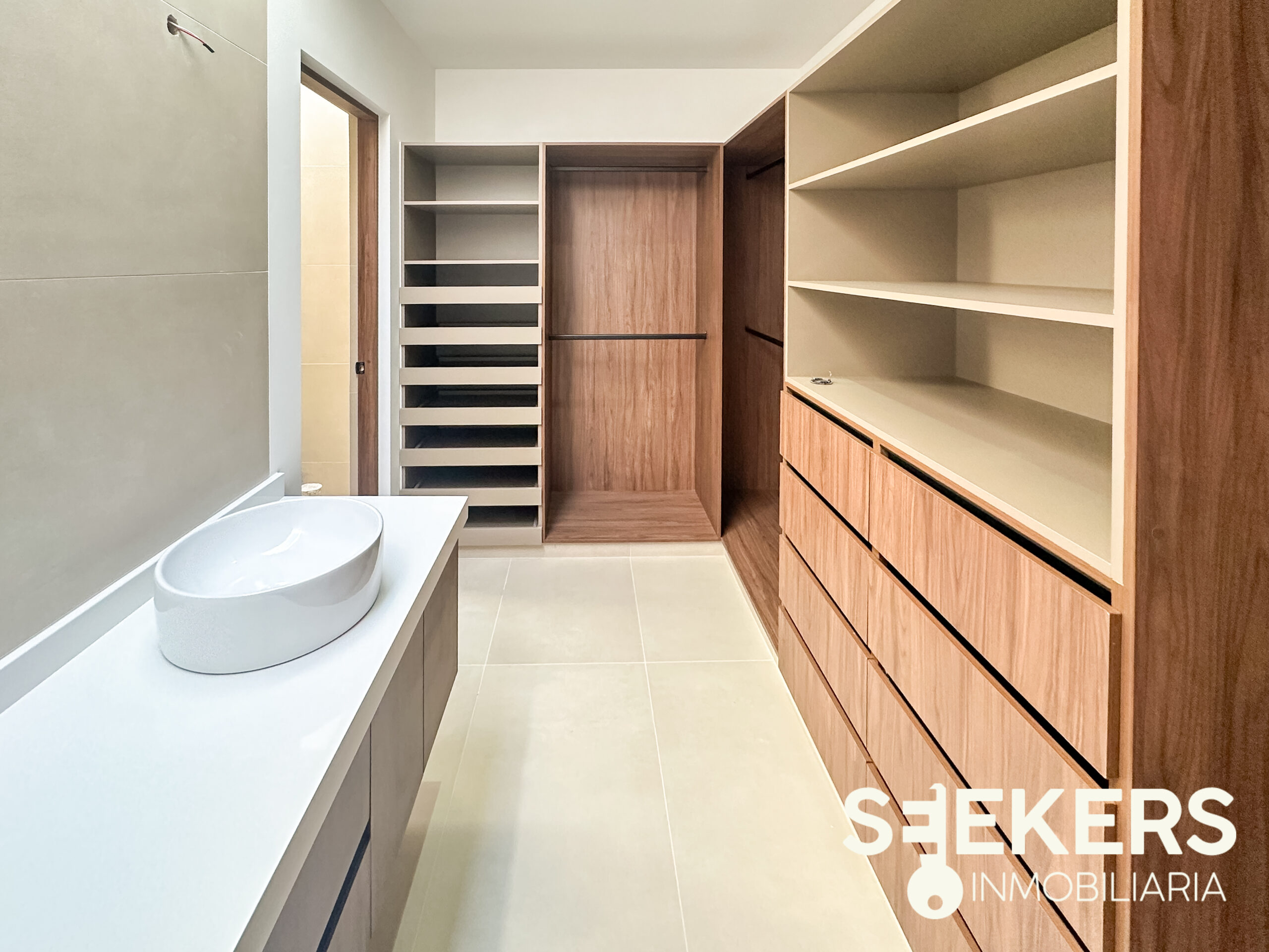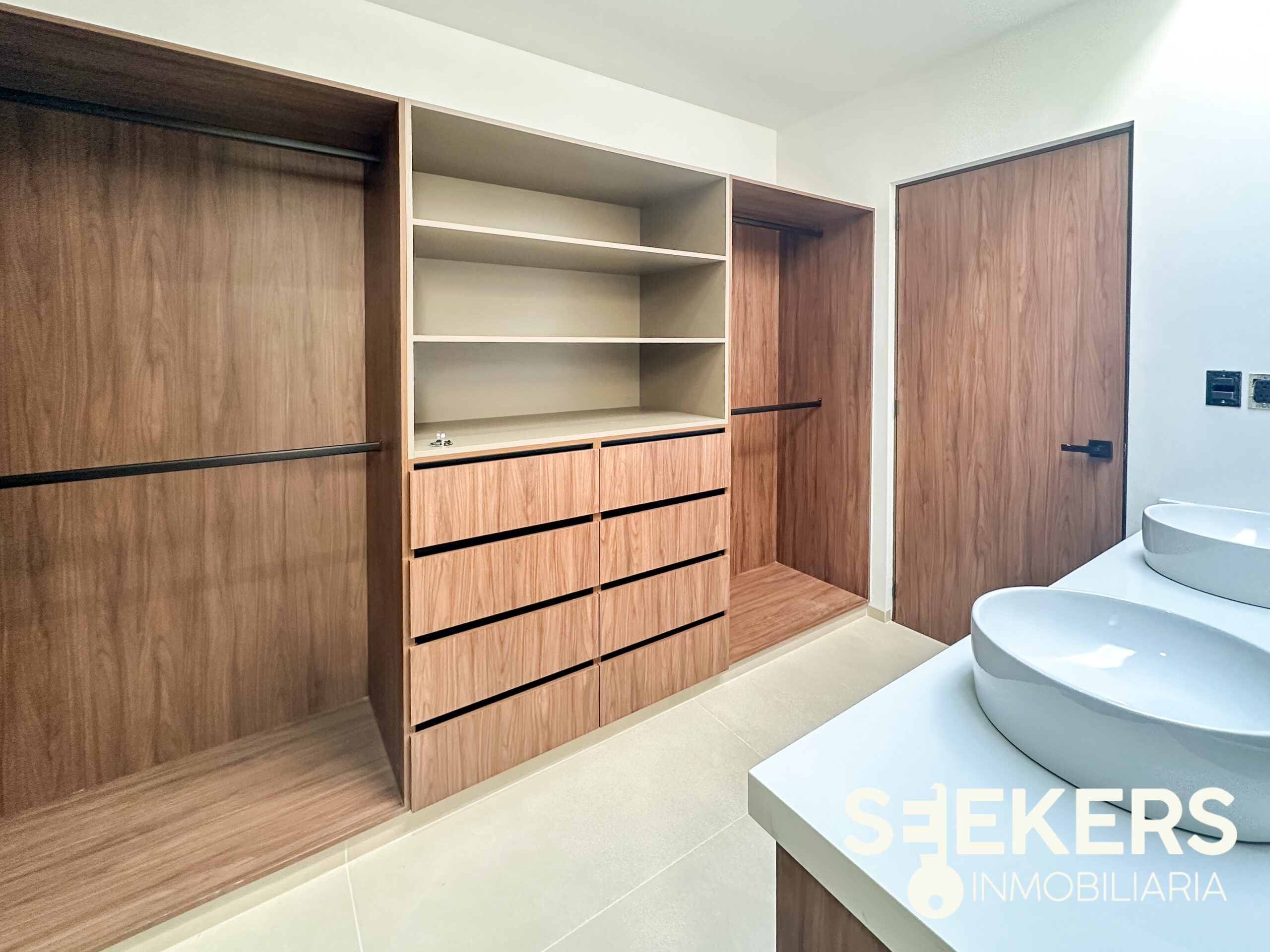 En el área privada se encuentran dos habitaciones secundarias, que comparten un baño completo, además de un hall de TV, perfecto como espacio familiar o área de entretenimiento. La máster suite con walk-in closet ofrece privacidad y confort, complementada con baño equipado con vanity, espejos y canceles de cristal templado de 10 mm, detalles que elevan el nivel de acabados.