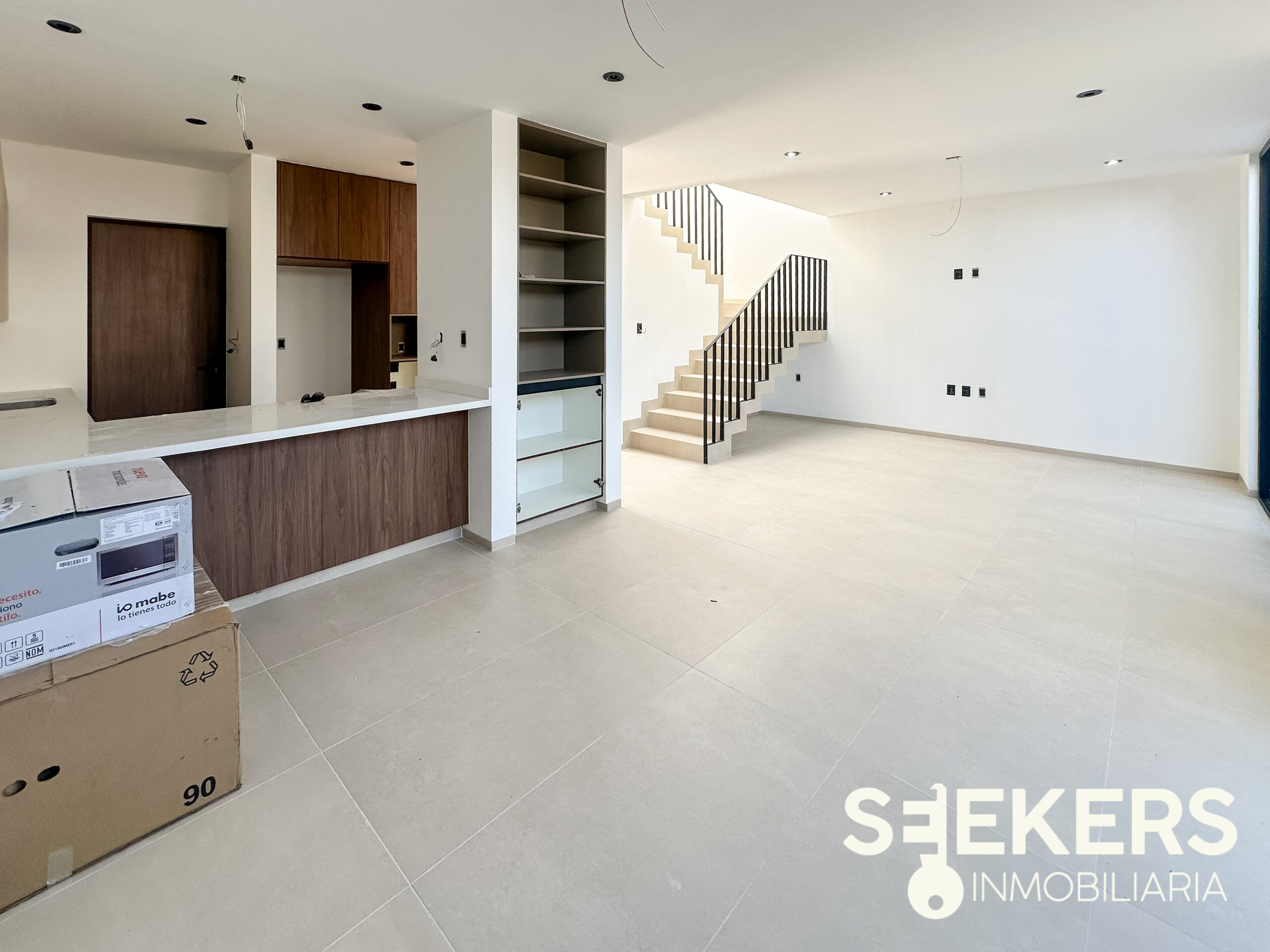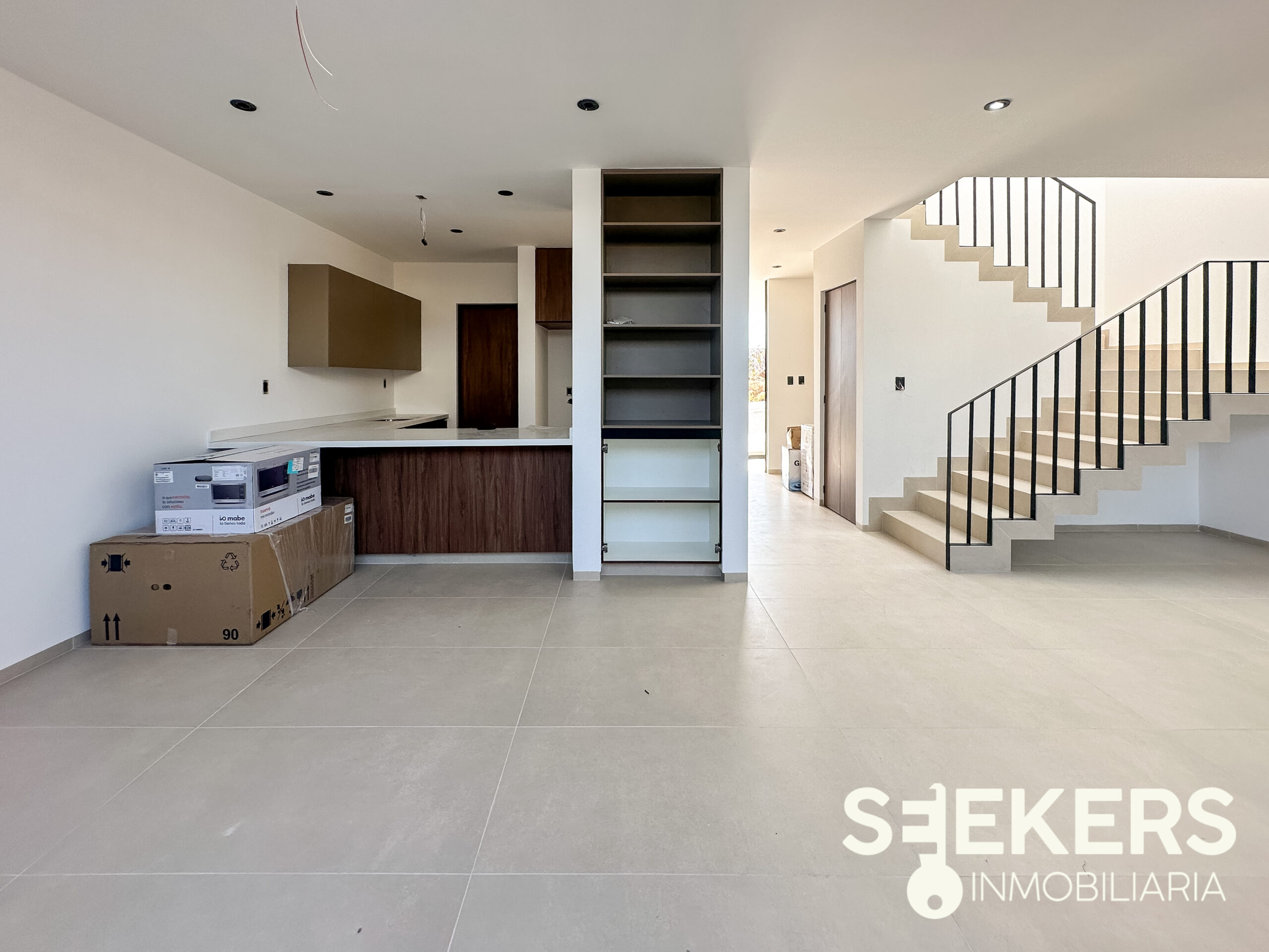 La cocina equipada con cubierta de cuarzo destaca por su diseño contemporáneo y materiales de calidad, ideal para el uso diario y la convivencia. Los pisos de porcelanato formato 60 x 1.20 aportan elegancia y continuidad visual en toda la vivienda. La casa cuenta con alturas interiores de 2.70 metros, lo que genera mayor sensación de amplitud e iluminación.