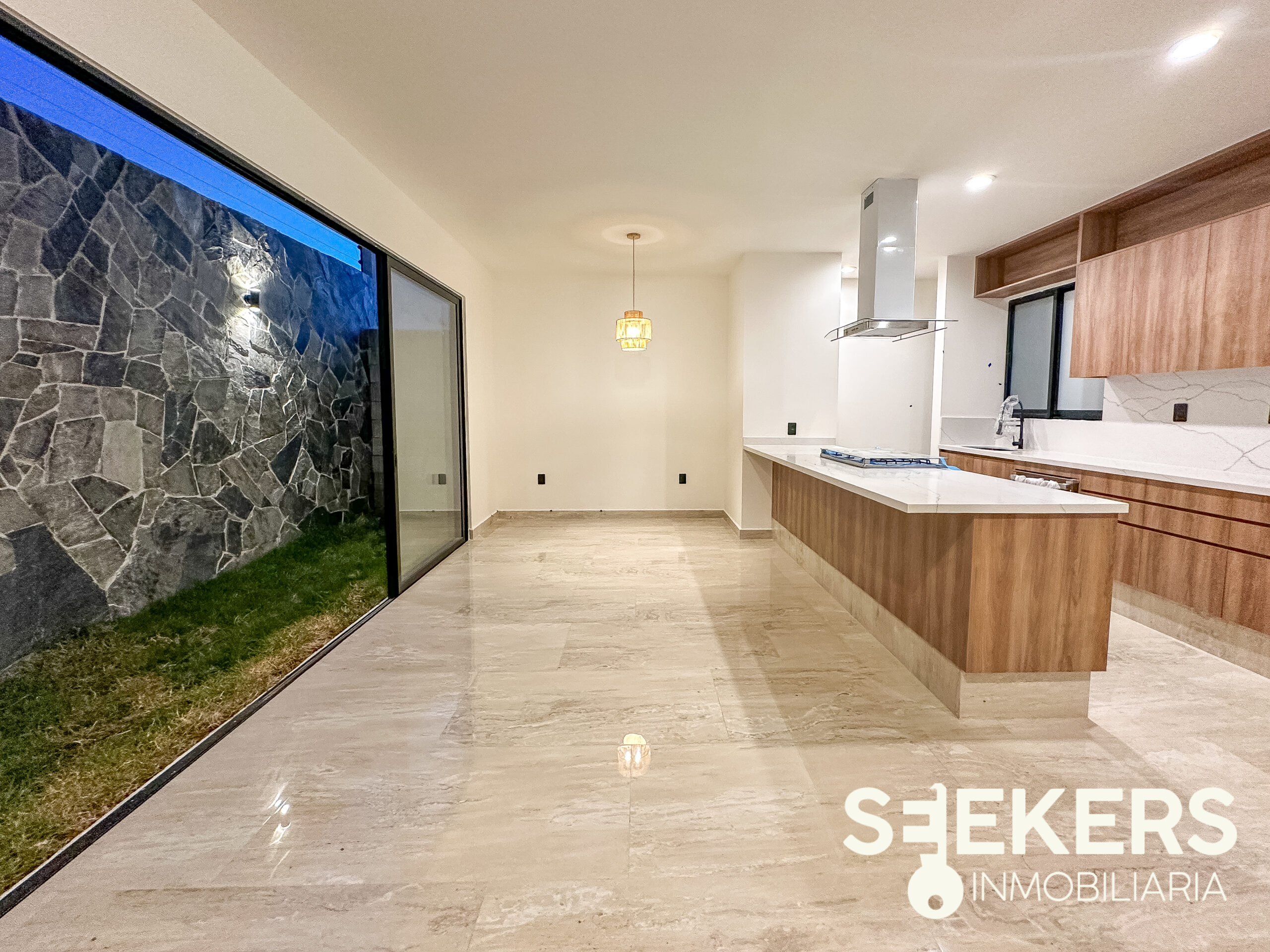 Casa en venta en Zizana, Querétaro con 180 m² de construcción. Ideal para familias, esta casa cuenta con una recámara en planta baja con baño completo, pasillo lateral, medio baño para visitas, sala-comedor con excelente iluminación natural y ventanales con vista al jardín. La cocina está lista para personalizar a tu gusto y el área de lavado es semi techada. En planta alta encontrarás una recámara principal con vestidor lineal, doble ovalin, balcón privado, sala de TV y dos recámaras secundarias con clóset que comparten baño. Además cuenta con unas amenidades increibles como alberca, gimnasio y salon de eventos al aire libre. Y lo mejor frente al Parque de Zizana que cuenta con un lago, restaurantes, pista de correr y parque para Perros