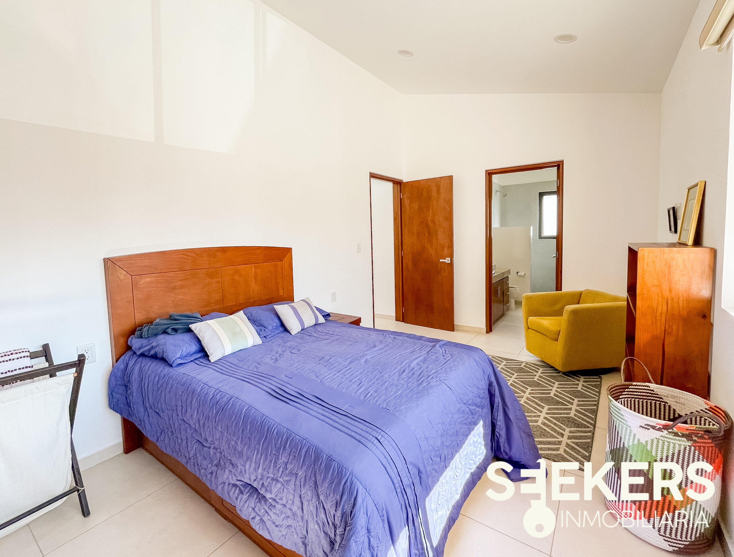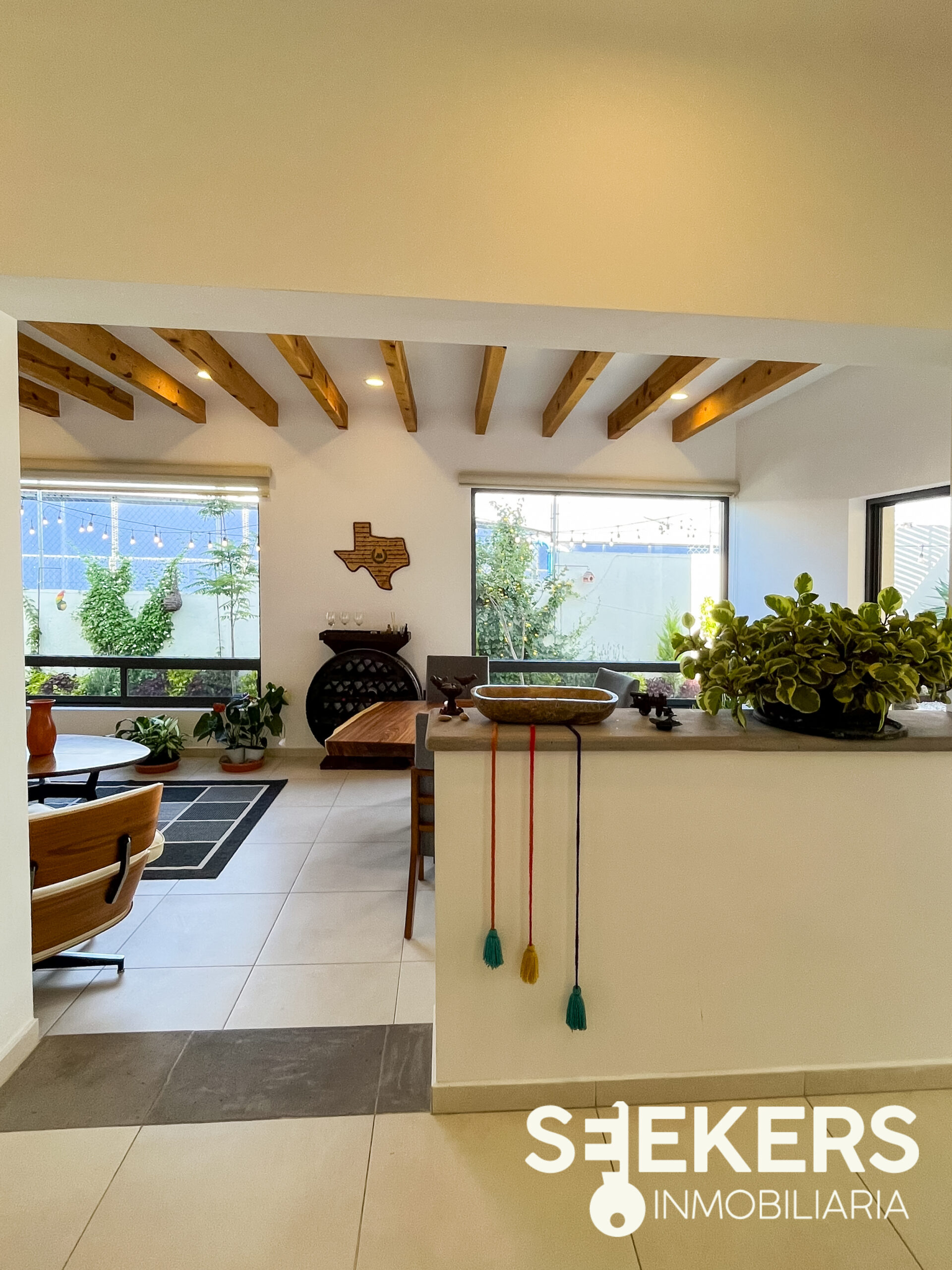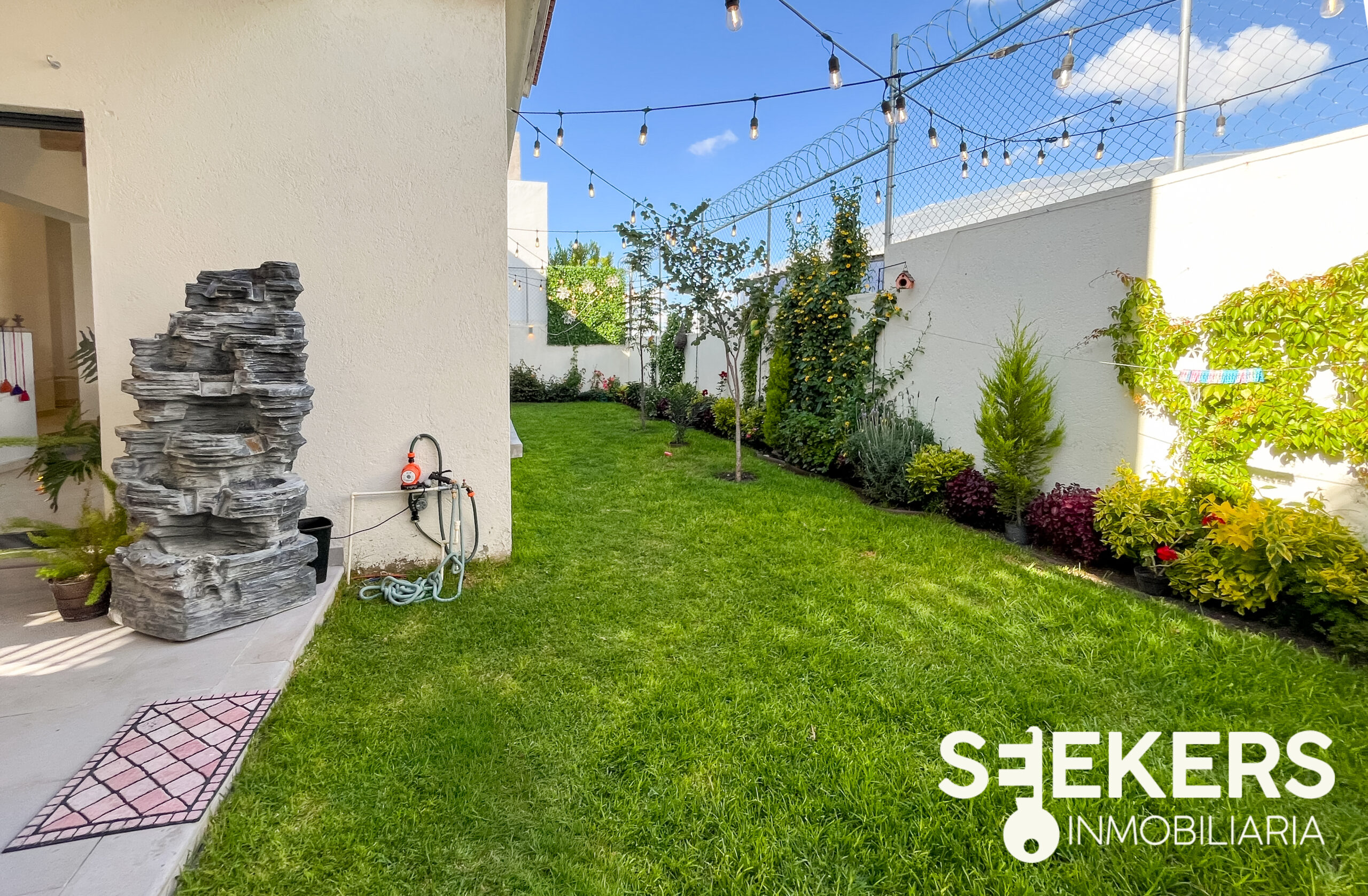 Casa en venta en Jicuri, Zibatá, Querétaro, dentro de privada con alta plusvalía. Esta residencia de autor cuenta con 313 m² de terreno y 319 m² de construcción, distribuidos en 2 niveles. Dispone de 4 recámaras, una de ellas en planta baja, y 4 baños completos. La recámara principal incluye vestidor y tina de hidromasaje. La propiedad ofrece sala-comedor, cocina equipada, hall de TV, pasillo lateral, jardín de 74 m² y 2 lugares de estacionamiento. Además, cuenta con lavandería cerrada, bodega y cisterna de 10,000 litros. Ubicada en un fraccionamiento con seguridad y servicios de primer nivel, esta casa es ideal para familias que buscan casas en venta en Querétaro con jardín, así como una inversión segura en una zona en crecimiento.