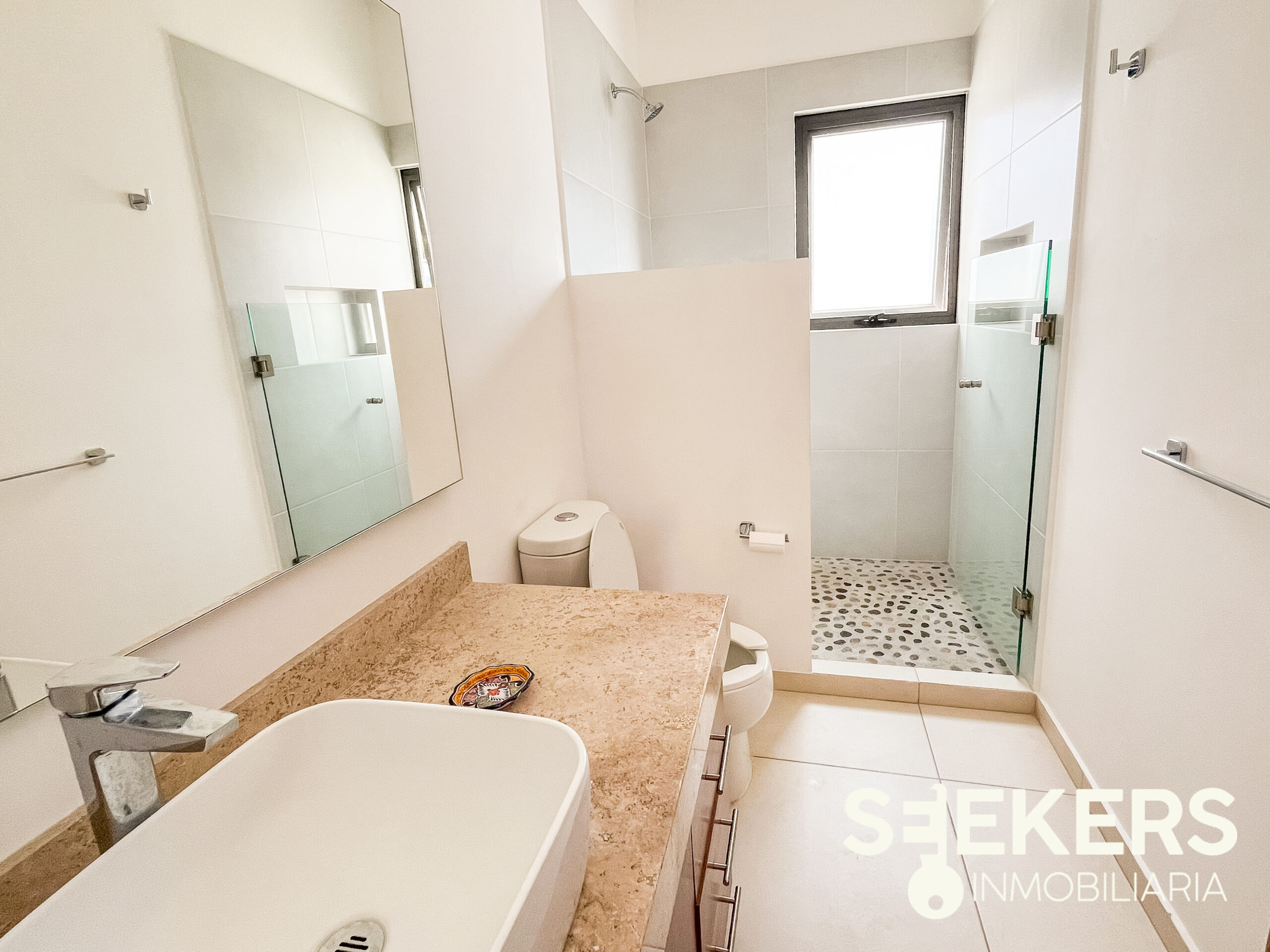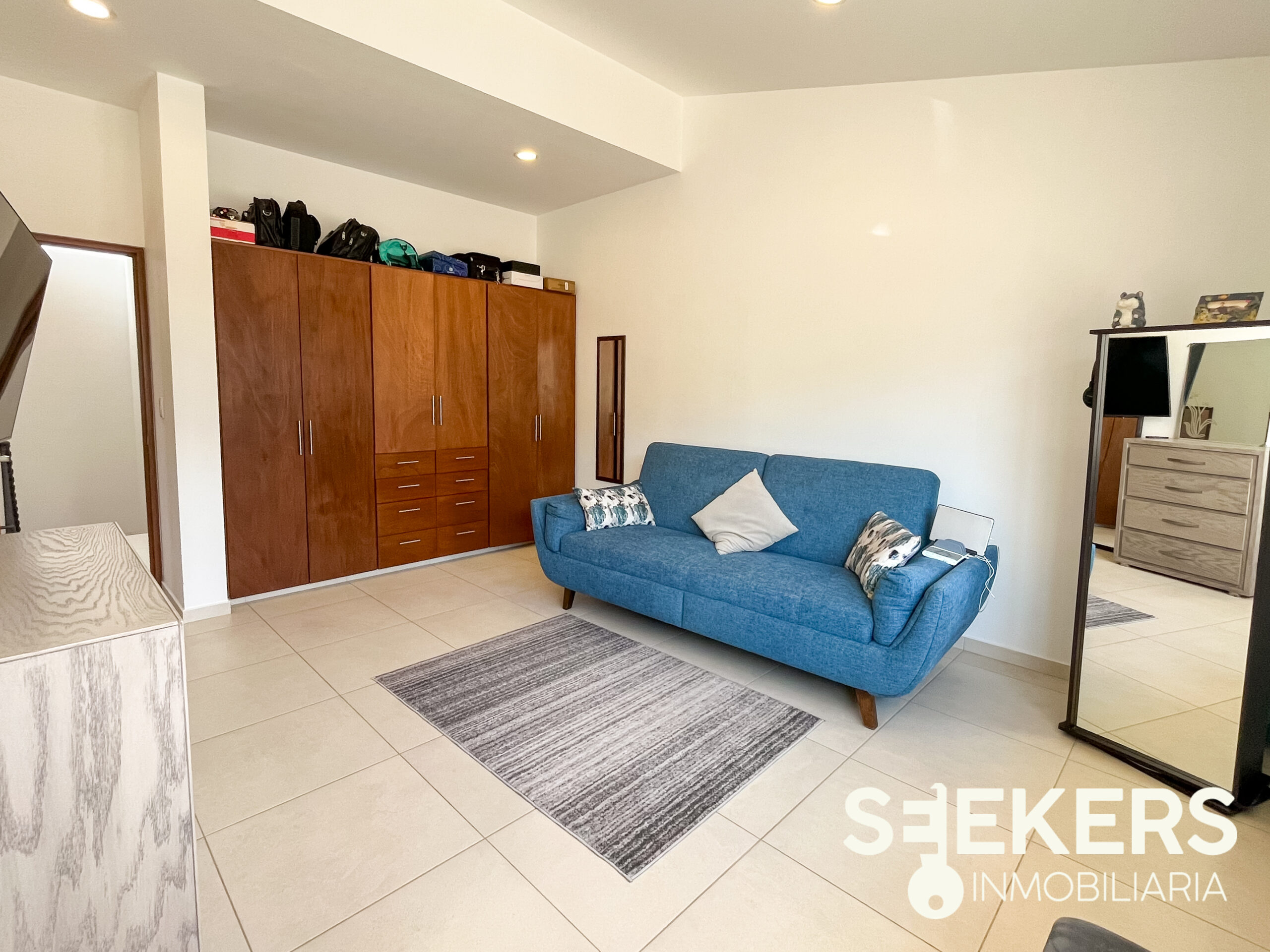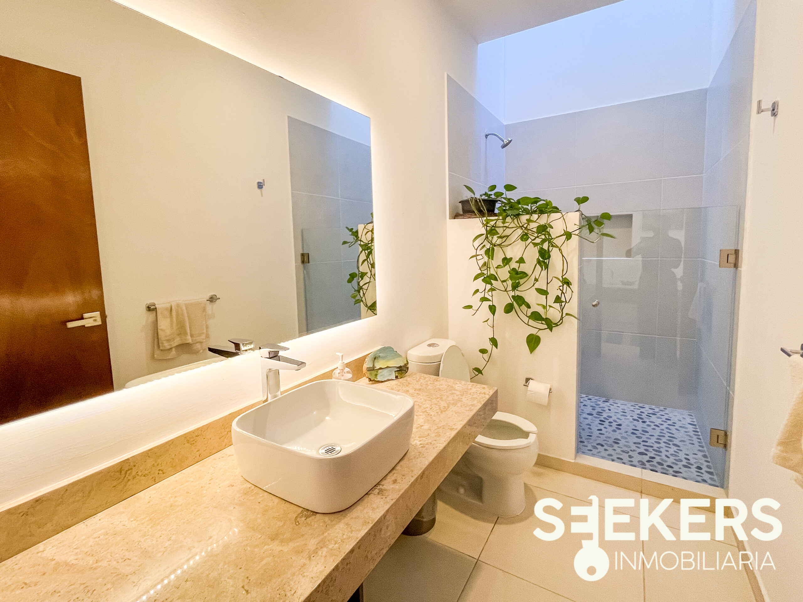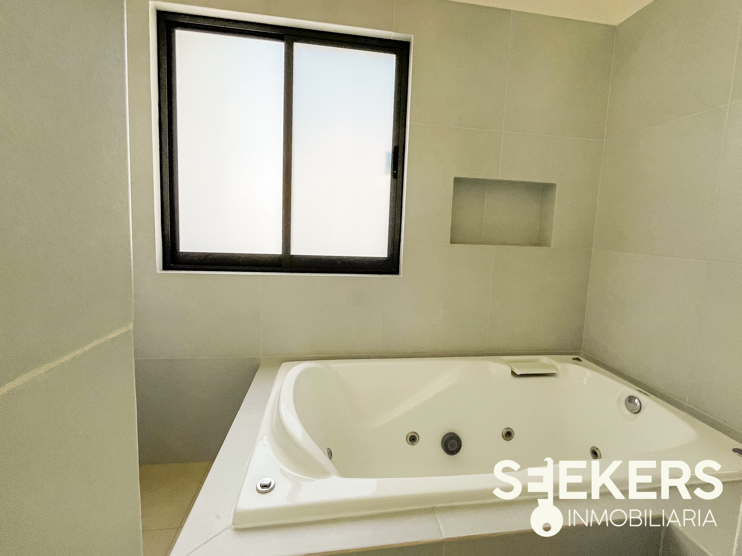 Casa en venta en Jicuri, Zibatá, Querétaro, dentro de privada con alta plusvalía. Esta residencia de autor cuenta con 313 m² de terreno y 319 m² de construcción, distribuidos en 2 niveles. Dispone de 4 recámaras, una de ellas en planta baja, y 4 baños completos. La recámara principal incluye vestidor y tina de hidromasaje. La propiedad ofrece sala-comedor, cocina equipada, hall de TV, pasillo lateral, jardín de 74 m² y 2 lugares de estacionamiento. Además, cuenta con lavandería cerrada, bodega y cisterna de 10,000 litros. Ubicada en un fraccionamiento con seguridad y servicios de primer nivel, esta casa es ideal para familias que buscan casas en venta en Querétaro con jardín, así como una inversión segura en una zona en crecimiento.
