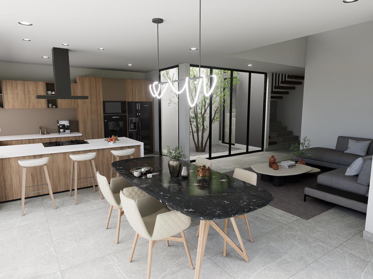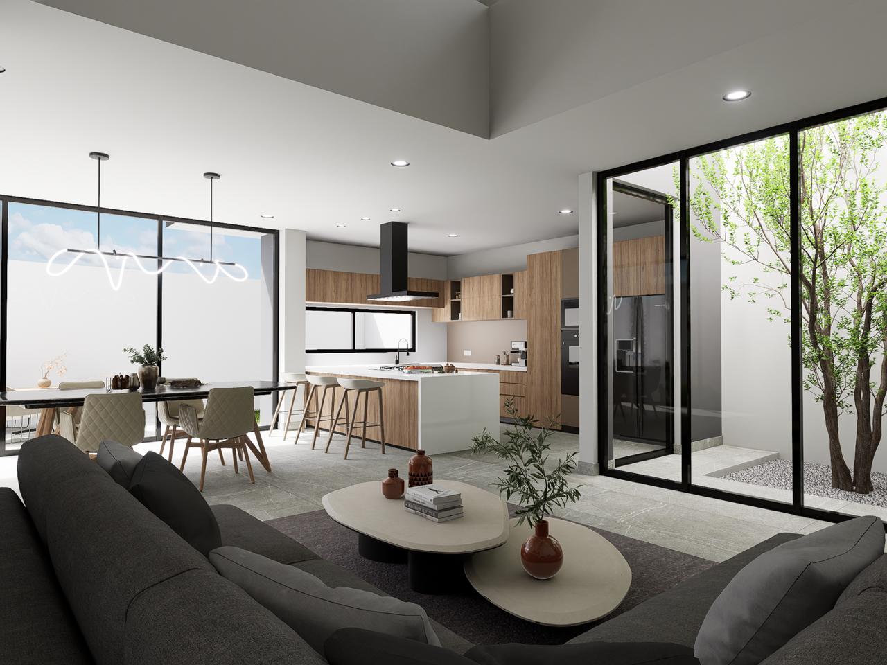 Esta casa en preventa en Zibatá Querétaro, modelo Lucía, es una excelente oportunidad para quienes buscan una residencia moderna, amplia y con alto potencial de plusvalía dentro de una de las zonas residenciales mejor planeadas de la ciudad. Zibatá destaca por su campo de golf, áreas verdes, lago, canchas deportivas, casa club y vigilancia permanente, ofreciendo un estilo de vida integral y seguro La propiedad cuenta con 185.31 m² de terreno y 217.78 m² de construcción, distribuidos en tres niveles con una arquitectura contemporánea que prioriza la iluminación natural y la amplitud. En planta baja, ofrece estacionamiento para tres autos, una recámara en planta baja o estudio amplio con clóset y baño completo, ideal para visitas o home office. La sala a doble altura se convierte en el corazón de la casa, acompañada de un patio interior con árbol, que aporta frescura y una conexión natural única. La cocina integral totalmente equipada cuenta con elegantes barras de cuarzo, y el comedor tiene acceso directo a la terraza y al jardín trasero, complementado con cuarto de lavado En la planta alta, se encuentran tres recámaras. La recámara principal destaca por su amplio vestidor, doble lavabo y baño completo. Las recámaras secundarias incluyen clóset y comparten baños con canceles de cristal templado y lavabos de mármol, manteniendo una línea de acabados moderna y de alta calidad. También se integra un armario de blancos, optimizando la funcionalidad del espacio El roof garden es uno de los grandes atractivos de esta propiedad, ofreciendo una hermosa vista, bodega y medio baño, con la opción de añadir un paquete plus que incluye pérgola techada, barra con tarja, contrabarra y mobiliario de concreto, ideal para reuniones sociales y momentos al aire libre Gracias a su ubicación dentro de Zibatá, esta casa es ideal para quienes buscan casas en preventa en Zibatá Querétaro, ya sea para vivir con alta calidad de vida o como inversión inmobiliaria en una de las zonas con mayor crecimiento y demanda del estado. Además, se cuenta con la facilidad de tramitar cualquier tipo de crédito sin costo, lo que hace de esta propiedad una opción aún más atractiva
