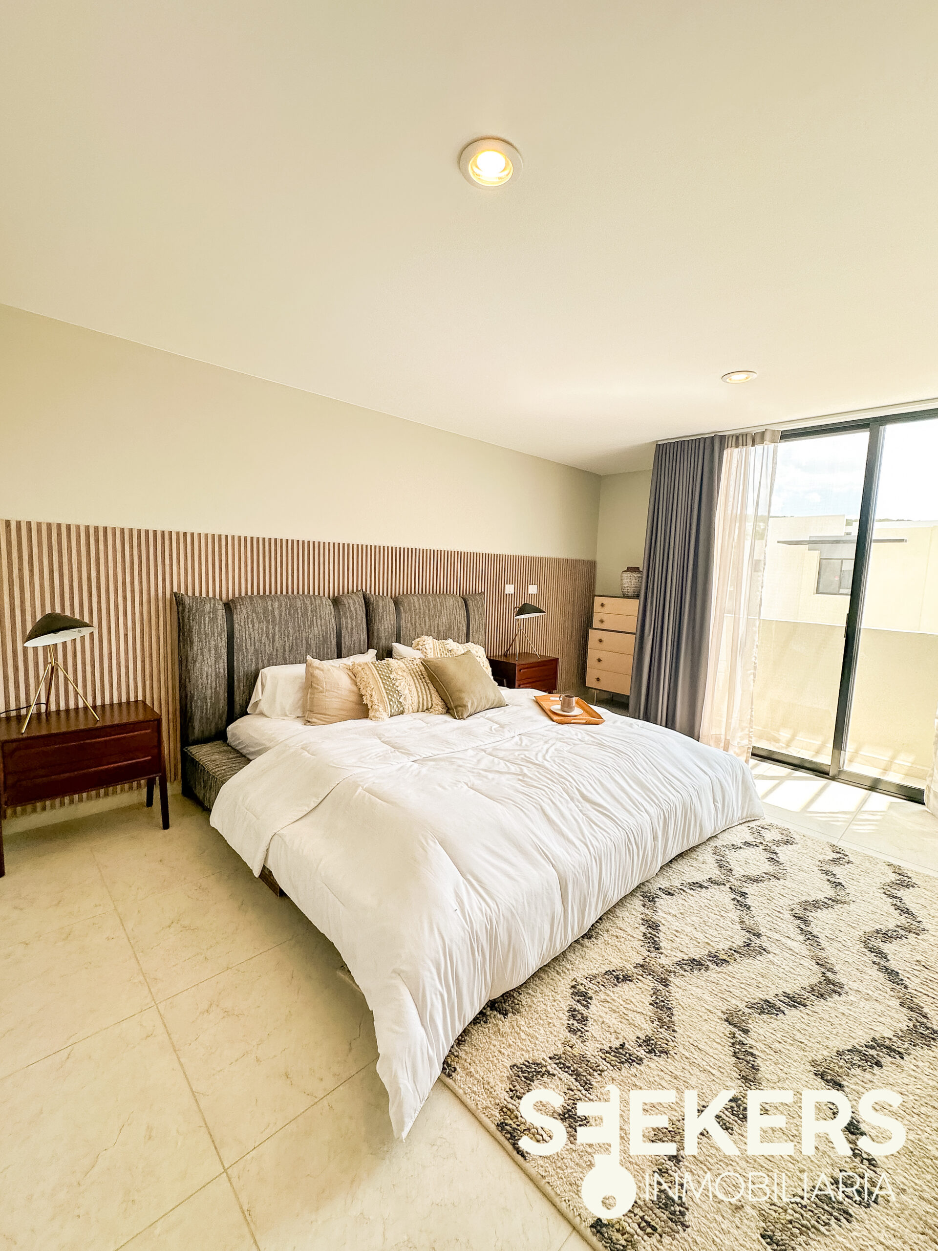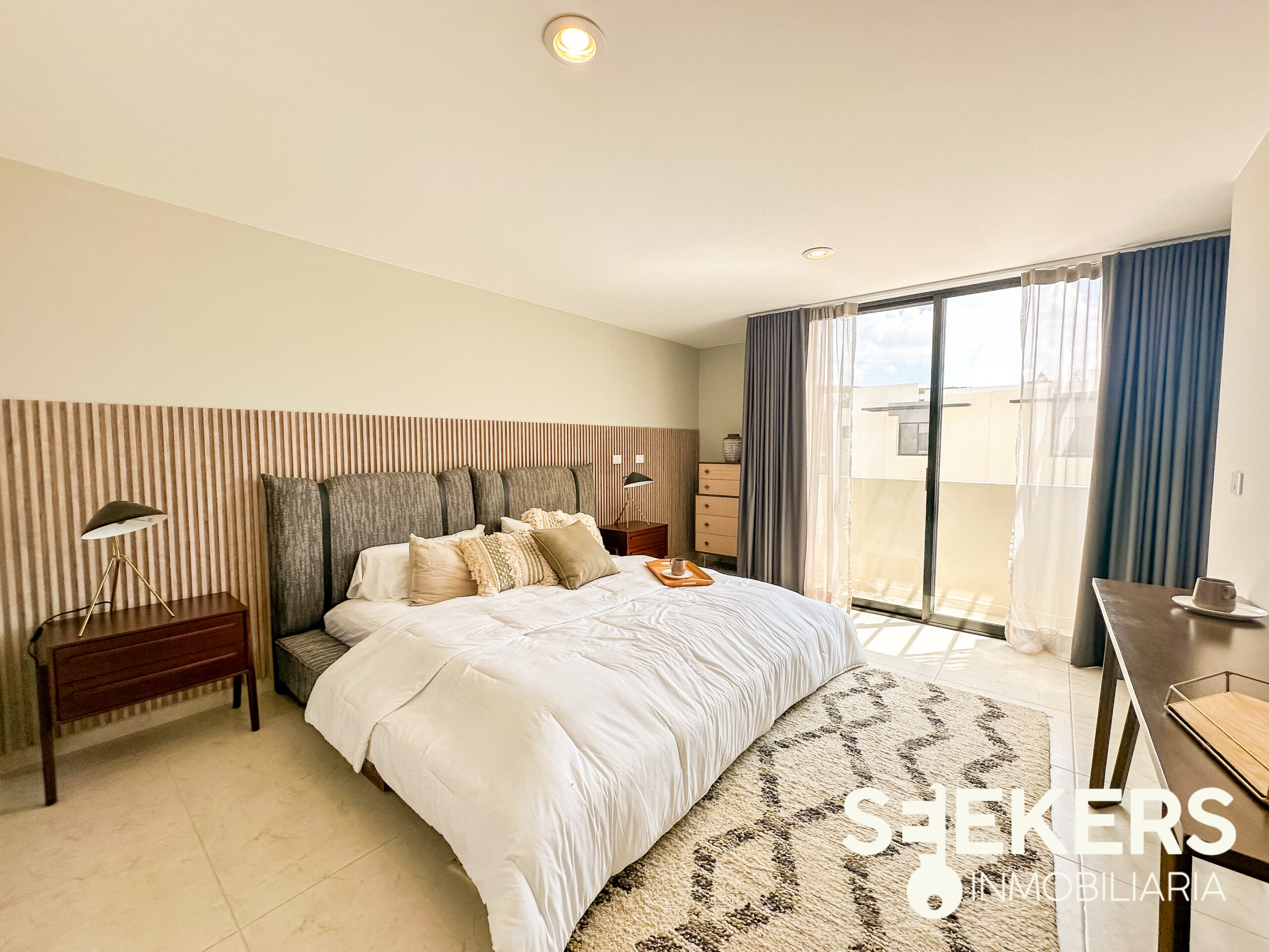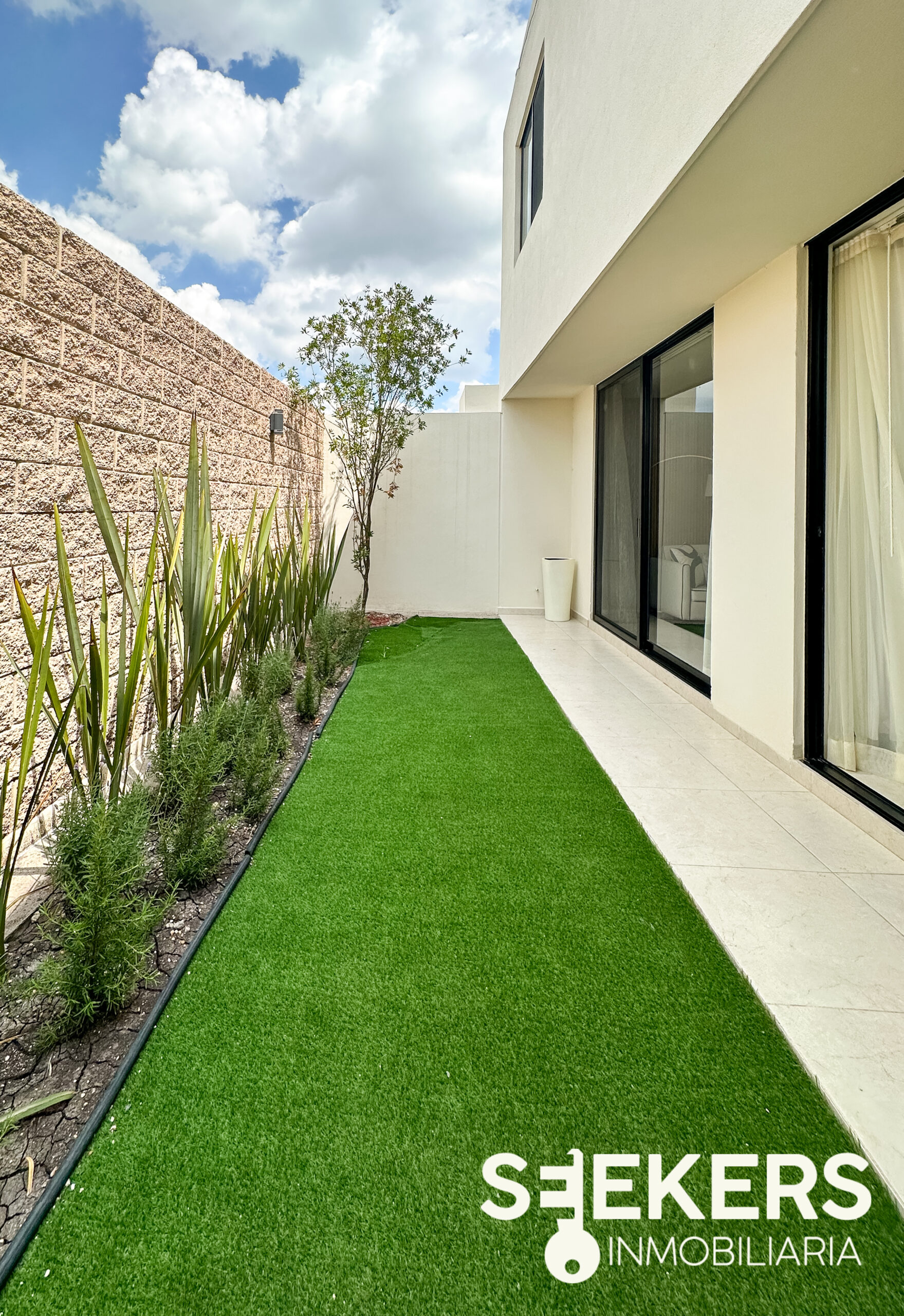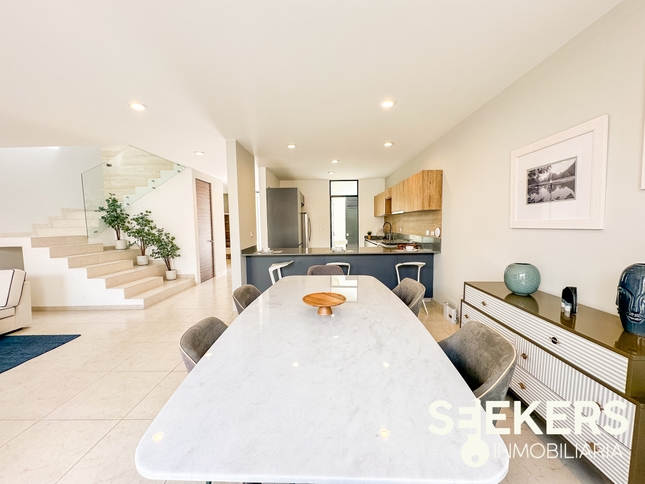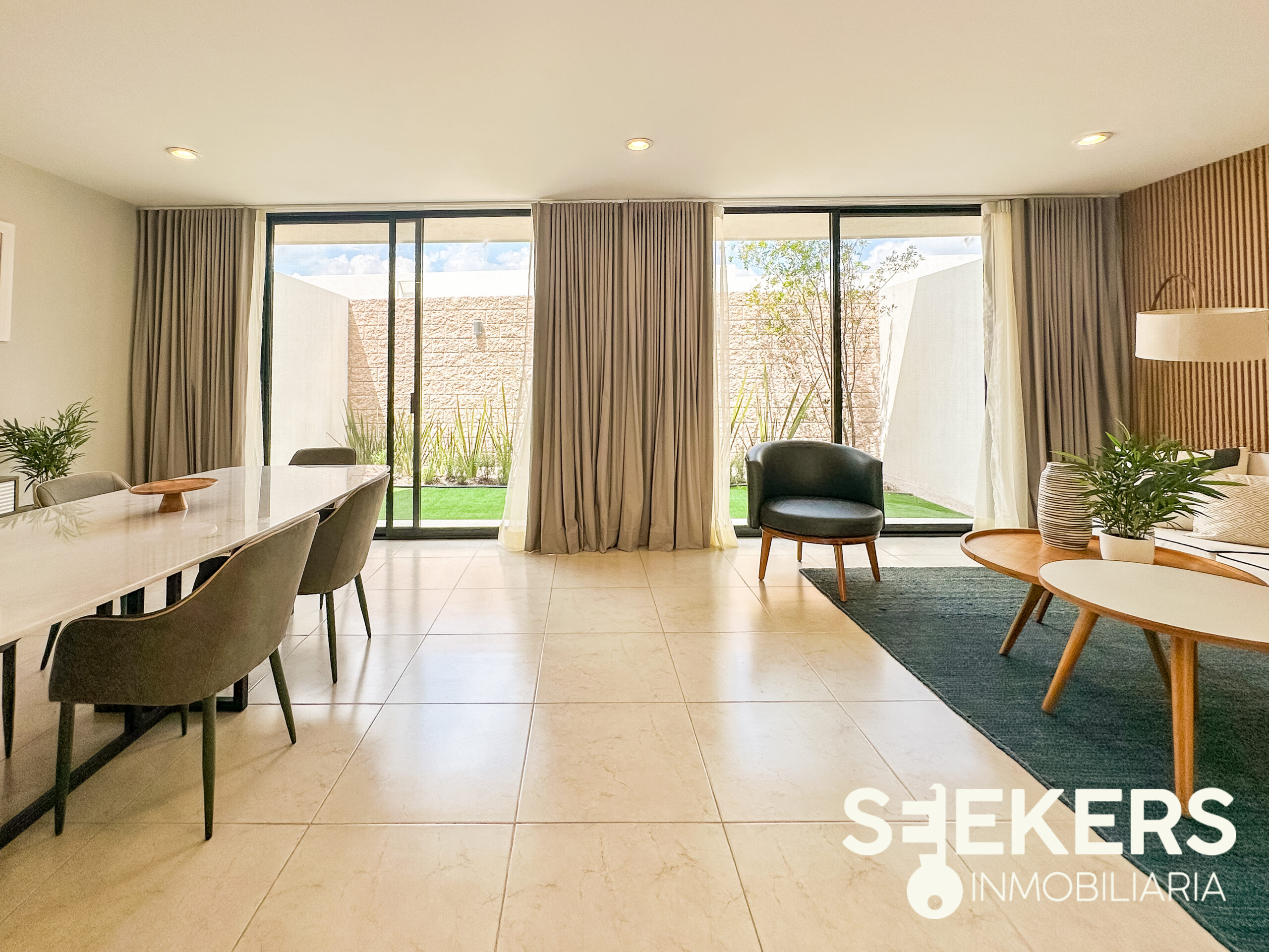 Fachada en piedra galarza. Puerta de aluminio estilo madera. Chapa electrónica. Pisos cerámicos de 60 cm X 60 cm. Cancelería europea de aluminio negro. Cocina con cuarzo color gris con estufa. Carpinterías en MDF modelo monarca. Canceles de baño de cristal templado. Vanities en los baños. La casa se entrega totalmente pintada de blanco. Se entrega sin pasto y sin espejos. La casa se puede adquirir con o sin equipo el equipamiento de la casa es cocina closets y canceles.