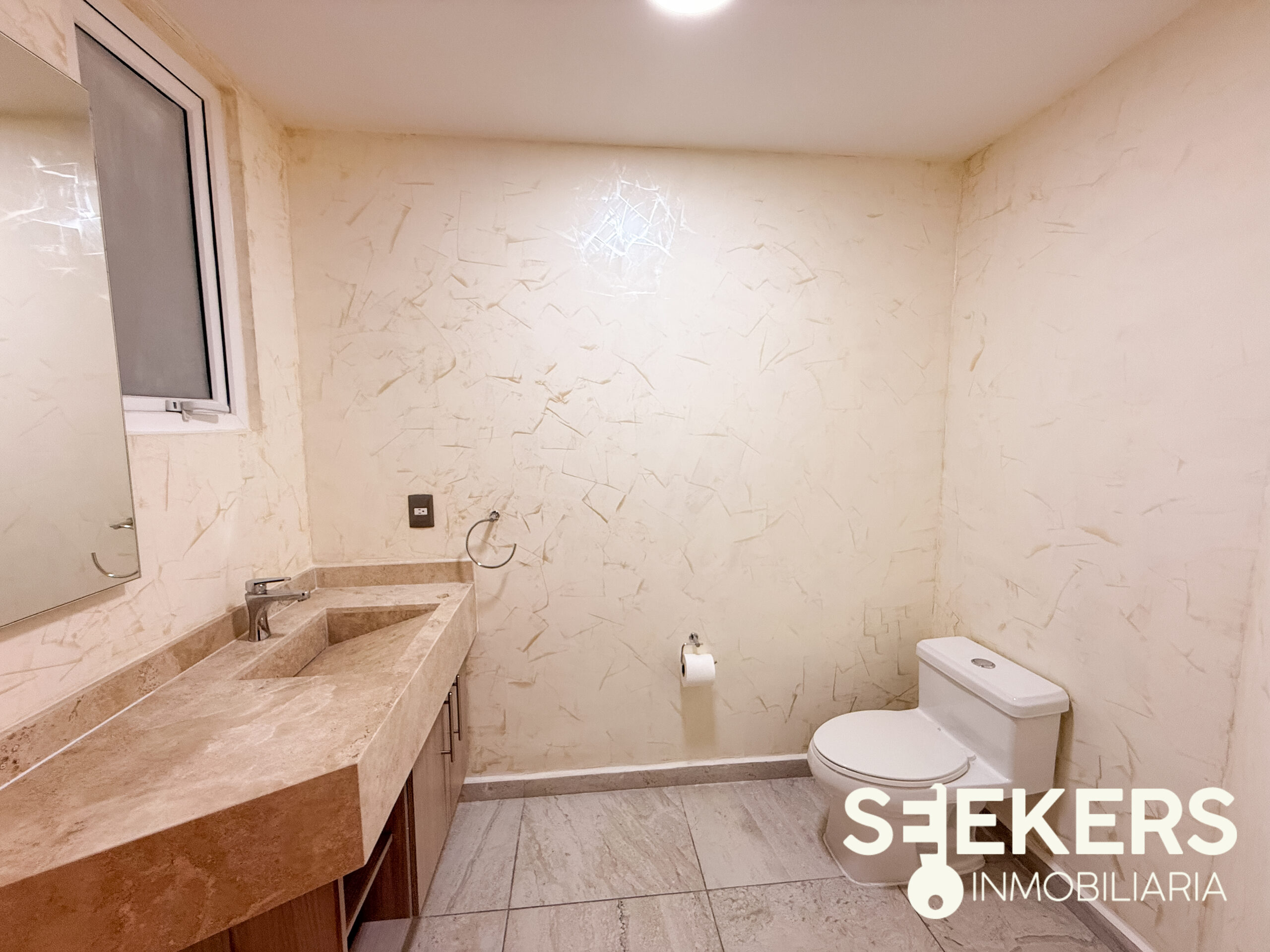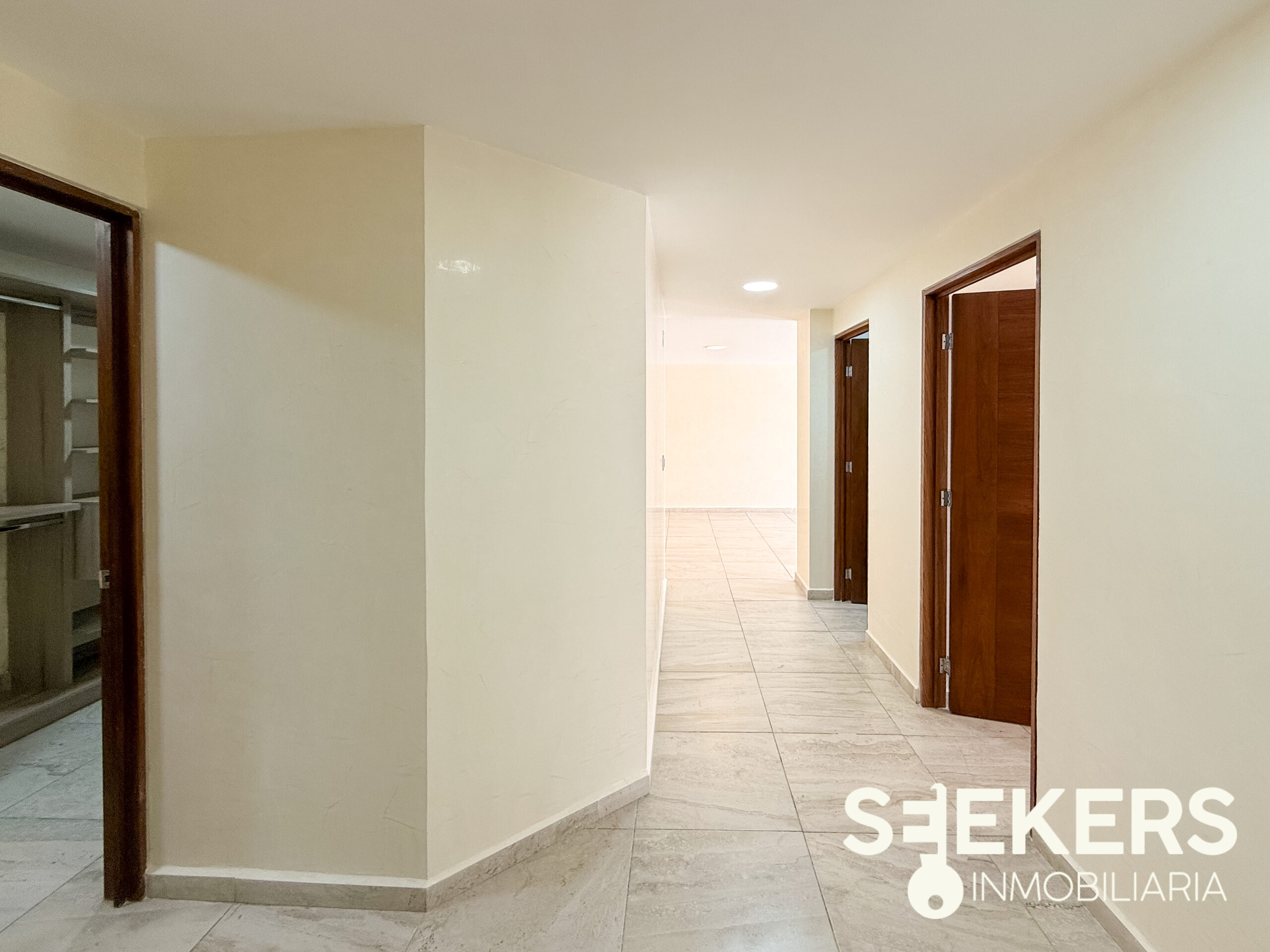 Este departamento en renta en El Refugio Querétaro es una excelente opción para quienes buscan amplitud, comodidad y un estilo de vida residencial dentro de una de las zonas más consolidadas de la ciudad. El Refugio destaca por su ubicación estratégica, cercanía a plazas comerciales, supermercados, escuelas y vialidades principales, ofreciendo una excelente calidad de vida.La propiedad cuenta con 245 m² de superficie, distribuidos en un solo nivel, lo que brinda una experiencia cómoda y funcional, ideal para quienes prefieren evitar escaleras y disfrutar de espacios amplios en una sola planta.El departamento dispone de tres habitaciones, diseñadas para ofrecer privacidad y confort. Además, cuenta con tres baños completos y un medio baño, lo que proporciona mayor comodidad tanto para los residentes como para las visitas.Uno de los principales atributos de este inmueble es su terraza, un espacio exterior ideal para relajarse, convivir o disfrutar del aire libre sin salir de casa. Este tipo de amenidad es altamente valorada dentro de los departamentos en renta en El Refugio Querétaro, ya que aporta mayor calidad de vida y un espacio adicional de convivencia.La propiedad también incluye un estudio, ideal para home office, área de lectura o espacio multifuncional, adaptándose a las necesidades actuales de trabajo y estilo de vida.En el área social, la vivienda cuenta con sala y comedor integrados con una cocina equipada, diseñada para brindar funcionalidad y practicidad en el día a día. Además, dispone de lavandería cerrada, lo que permite mantener las actividades domésticas organizadas.El departamento cuenta con dos lugares de estacionamiento, ofreciendo comodidad y seguridad para los residentes.En cuanto a equipamiento, dispone de gas natural y conexión a internet de fibra óptica, asegurando un adecuado funcionamiento de los servicios.Ubicado dentro de un condominio con mantenimiento aproximado de $3,000 pesos, el inmueble se encuentra en un entorno organizado y bien cuidado.Con antigüedad de 0 años, este departamento es completamente nuevo y listo para habitarse.Si estás buscando departamentos en renta en El Refugio Querétaro con espacios amplios, terraza y estudio, esta propiedad es una excelente opción para vivir con comodidad en una de las mejores zonas de la ciudad. Agenda tu visita y conócelo.