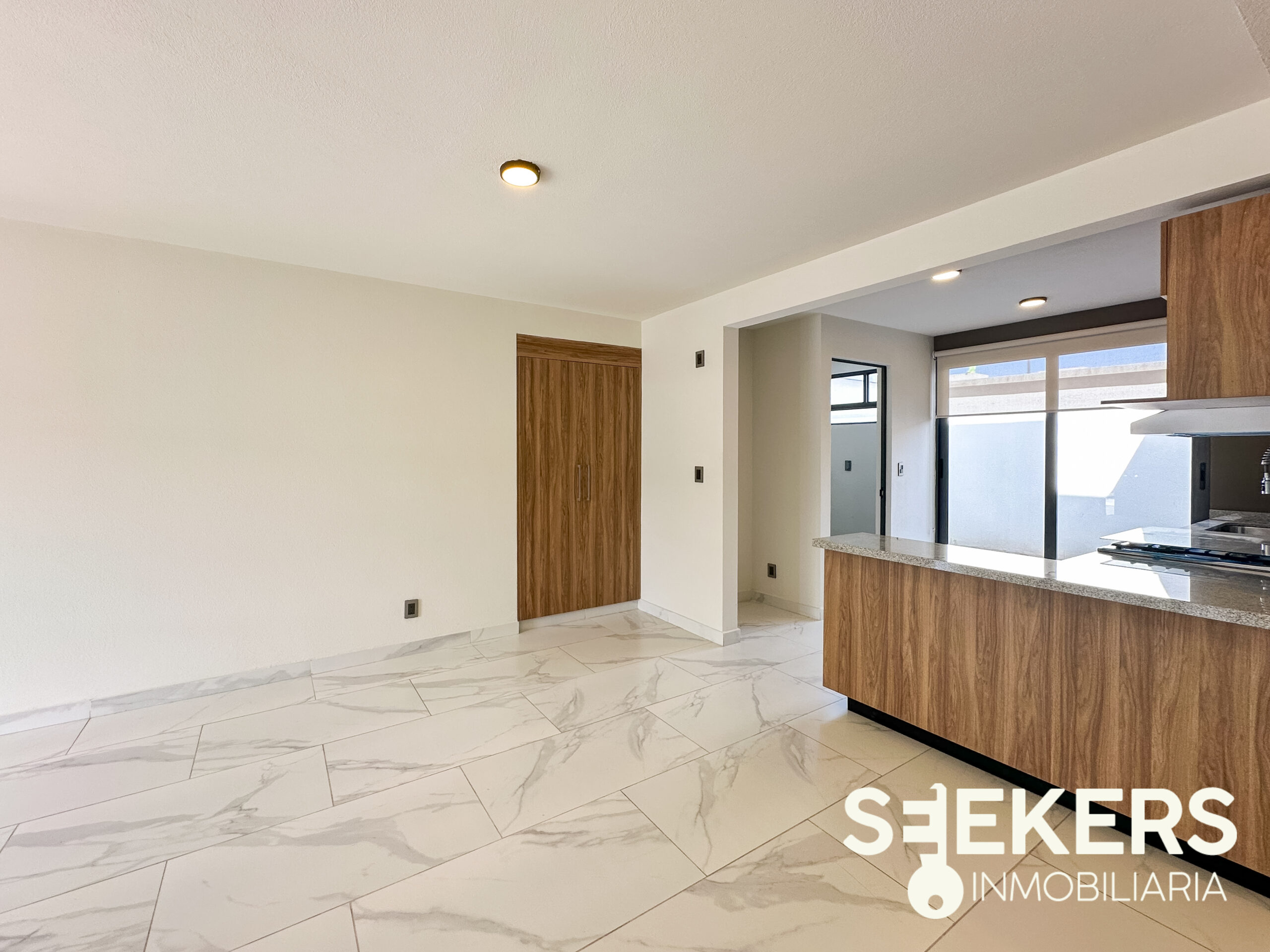 Departamento en venta en Zire, El Marqués, Querétaro, dentro del moderno Condominio Bonza. Este acogedor departamento cuenta con 106 m² de superficie, 2 habitaciones, 2 baños completos, cocina equipada, sala-comedor y un agradable jardín privado, ideal para disfrutar momentos al aire libre. Además, dispone de cisterna de 2,500 litros y un diseño funcional que aprovecha cada espacio. Con un precio de $2,300,000 MXN, es una excelente oportunidad para vivir o invertir en una zona de gran crecimiento y plusvalía. El condominio Bonza ofrece amenidades exclusivas: gimnasio, ludoteca, alberca, área de coworking, terraza y chapoteadero, brindando un estilo de vida moderno, seguro y cómodo. Vive en Zire Querétaro, una de las mejores zonas residenciales de El Marqués, donde comodidad, seguridad y exclusividad se unen para tu bienestar.