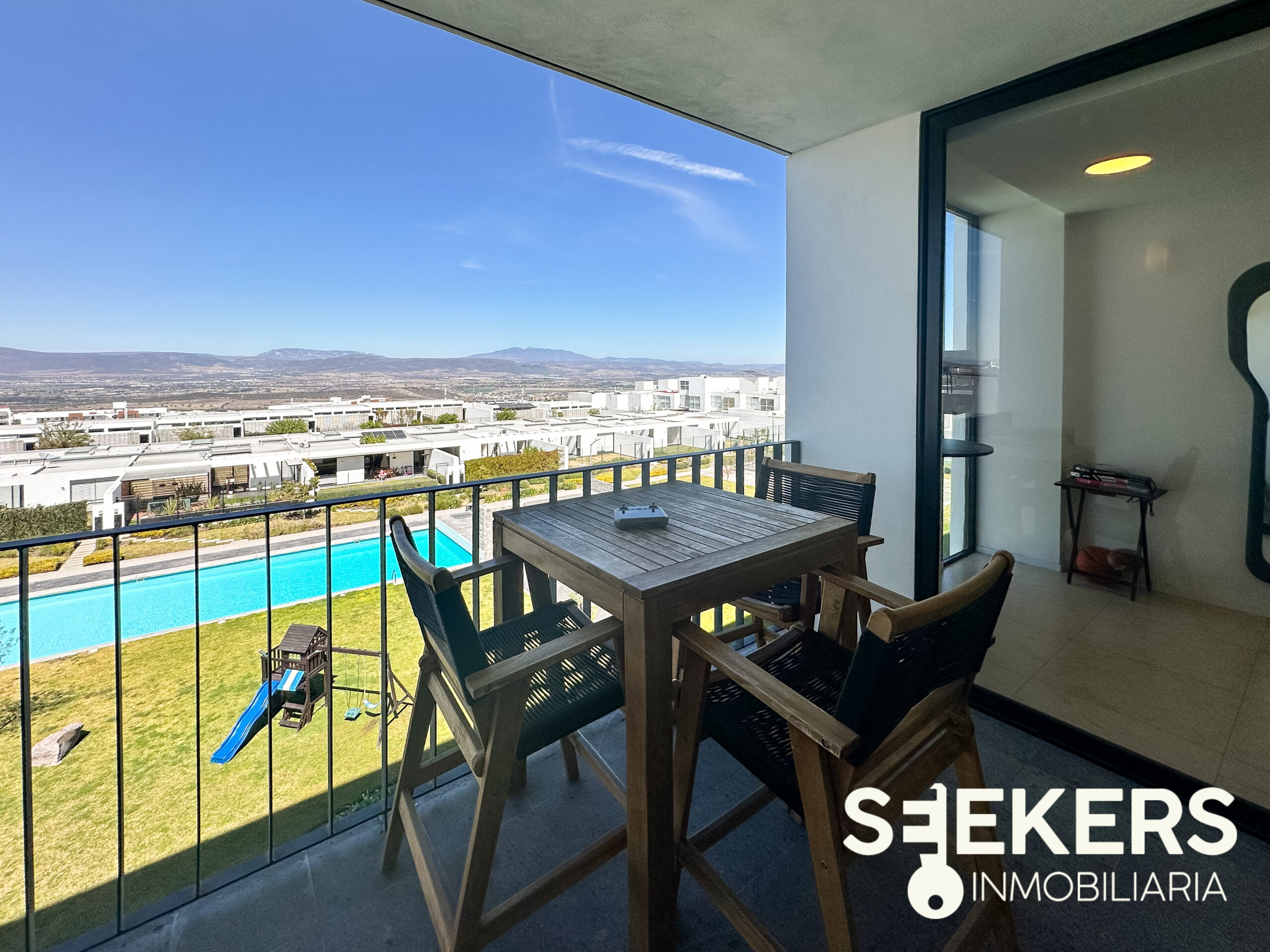 Este departamento en venta se ubica en Zibatá, a 5 minutos caminando de la Anahuac y lado de Plaza Zielo. Cuenta con 95 m2, ideal para estudiantes que quieren un ambiete seguro y relajado. El interior ofrece 2 recámaras con clóset, 2 baños completos, sala-comedor y cocina integral equipada con línea blanca. Disfruta de amenidades como alberca, gimnasio, salón de usos múltiples, salón de juegos infantiles, cancha de tenis, terraza y área de BBQ. Cuenta con 2 lugares de estacionamiento y estacionamiento de visitas. La seguridad está garantizada con caseta de guardia y seguridad privada. El edificio cuenta con elevador y los departamentos son muy espaciosos y confortables. Si necesitas amueblarlo también lo podemos hacer por ti!