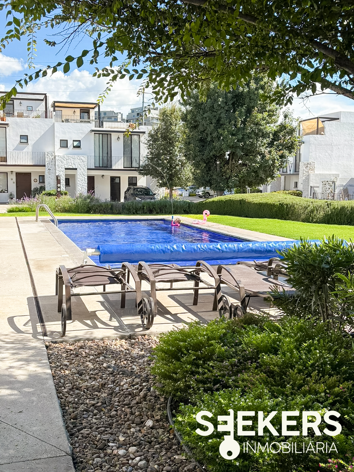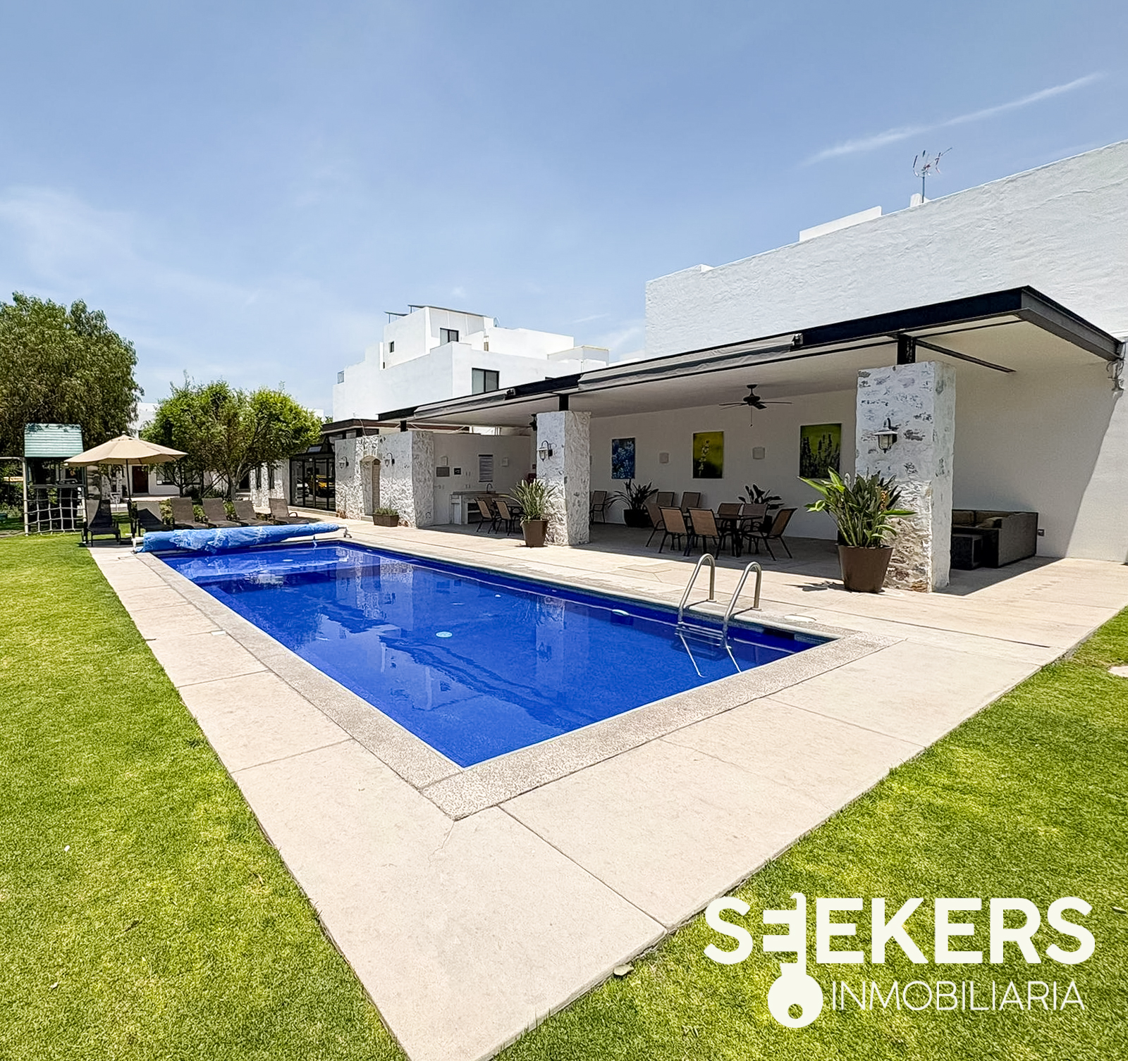 Esta casa en venta en Torre de Piedra Juriquilla es una excelente oportunidad para quienes buscan un hogar cómodo, bien distribuido y ubicado dentro de uno de los fraccionamientos más exclusivos y mejor consolidados de la zona. Torre de Piedra se distingue por su ambiente residencial, seguridad y amenidades pensadas para disfrutar una alta calidad de vida. La propiedad se asienta sobre un terreno de 176.54 m², con 176.35 m² de construcción, ofreciendo espacios amplios y funcionales tanto en áreas sociales como privadas. En planta baja, la casa cuenta con estacionamiento para dos autos, una sala amplia con excelente iluminación natural y salida directa al jardín, así como un comedor espacioso, ideal para reuniones familiares. Incluye medio baño para visitas, bodega o alacena, y una cocina integral equipada con estufa, campana y barra de granito, diseñada para facilitar la convivencia diaria. El cuarto de lavado cuenta con conexión para lavadora y secadora, aportando practicidad al hogar. El jardín trasero es uno de los grandes atractivos de la propiedad, con fuente decorativa y vegetación, creando un espacio agradable para el descanso y la convivencia al aire libre. En la planta alta, se encuentra una sala de TV, ideal como área familiar o de entretenimiento. La recámara principal dispone de vestidor, clóset y baño completo, brindando privacidad y confort. Además, cuenta con dos recámaras secundarias con clóset, que comparten un baño completo, manteniendo una distribución equilibrada para toda la familia. Entre sus características adicionales, la casa se encuentra en excelente estado de conservación y cuenta con persianas, mosquiteros, película en ventanas, ventiladores y canceles de cristal, lo que agrega valor y funcionalidad al inmueble. El fraccionamiento ofrece amenidades completas, como alberca climatizada, gimnasio equipado, palapa de usos múltiples con internet y juegos infantiles, ideales para disfrutar en familia durante todo el año. Por su ubicación, distribución y amenidades, esta propiedad es ideal para quienes buscan casa en venta en Torre de Piedra Juriquilla, casas con jardín y amenidades en Juriquilla, o una inversión inmobiliaria sólida en una de las zonas con mayor demanda de Querétaro. Una excelente opción para vivir con comodidad, seguridad y calidad de vida. Contáctanos para más información y agenda tu visita.